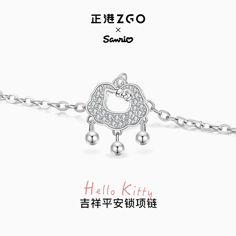正港ZGOxhellokitty项链纯银平安锁吊坠银饰生日礼物送女朋友女生