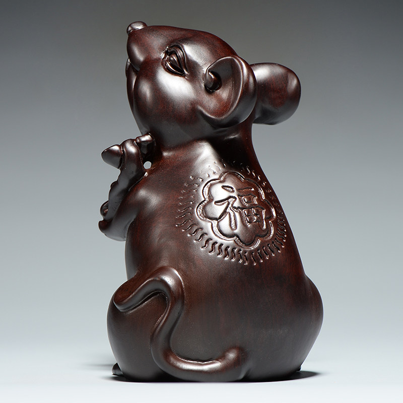 木头老鼠摆件黑檀实木质雕刻十二生肖木制鼠吉祥物装饰红木工艺品