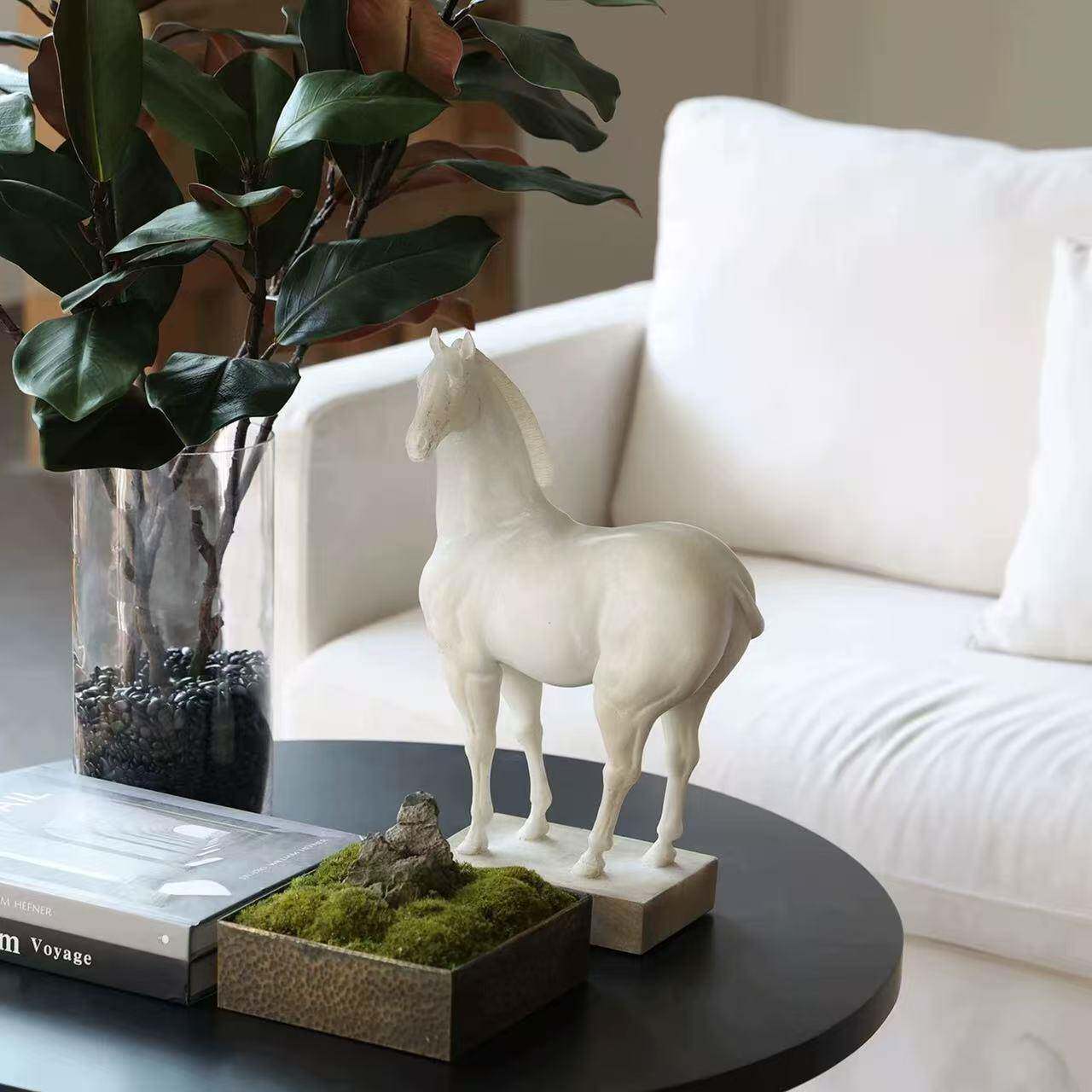 中古风复古白马RZLN02雕塑摆件居饰家白色马客厅店酒电视柜装饰礼