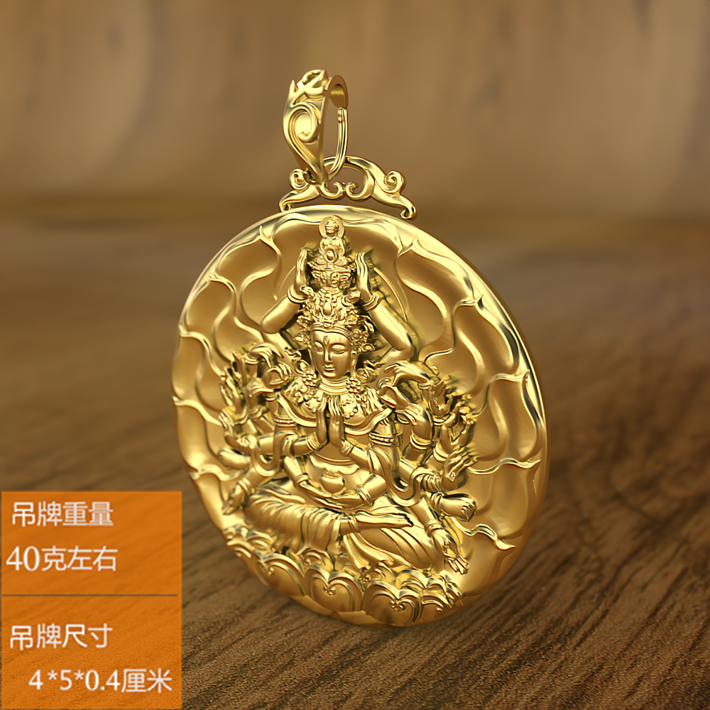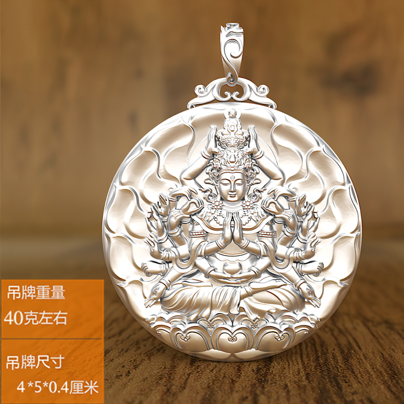 实心足银千手观音属鼠人吊坠本命佛守护神吊坠项链男银牌车挂