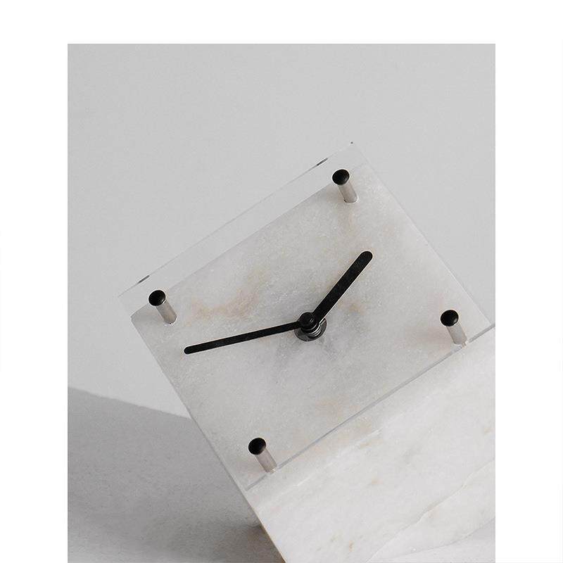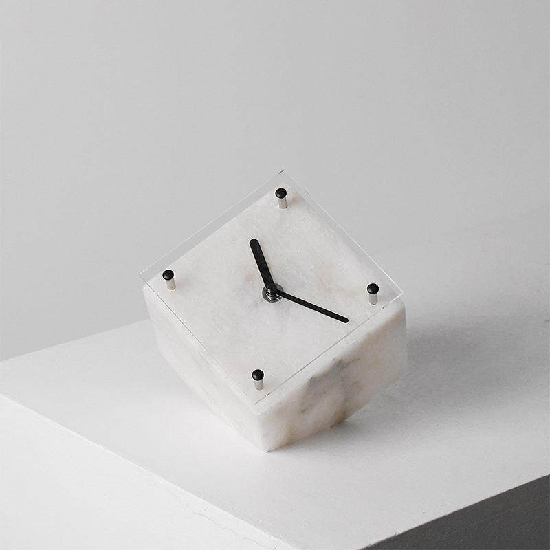 简约现代轻奢云石魔方时钟几何摆件书房民宿样板间装饰桌面摆设