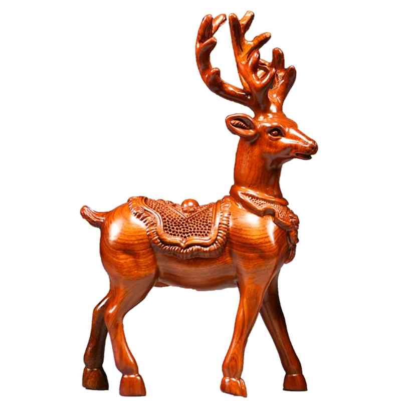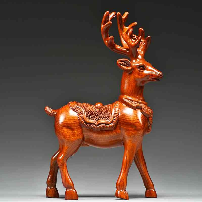 花梨木雕梅花鹿摆件家居客厅实木麋鹿一对工艺品桌面摆设酒柜装饰