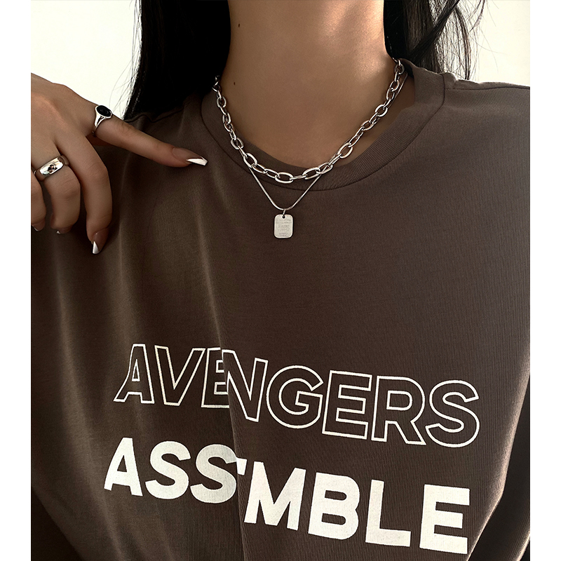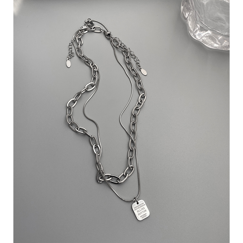 钛钢双层叠戴项链女潮ins嘻哈锁骨链男轻奢小众高级感钛钢配饰