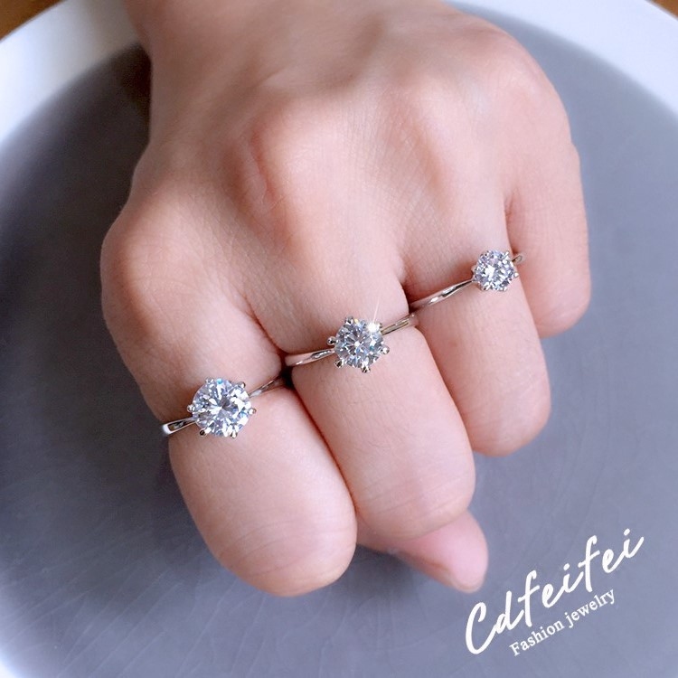 经典六爪50分假钻戒仿真结婚1克拉求婚道具个性小众女款婚戒戒指
