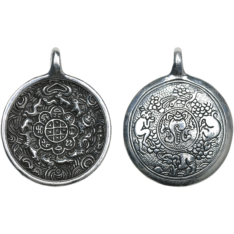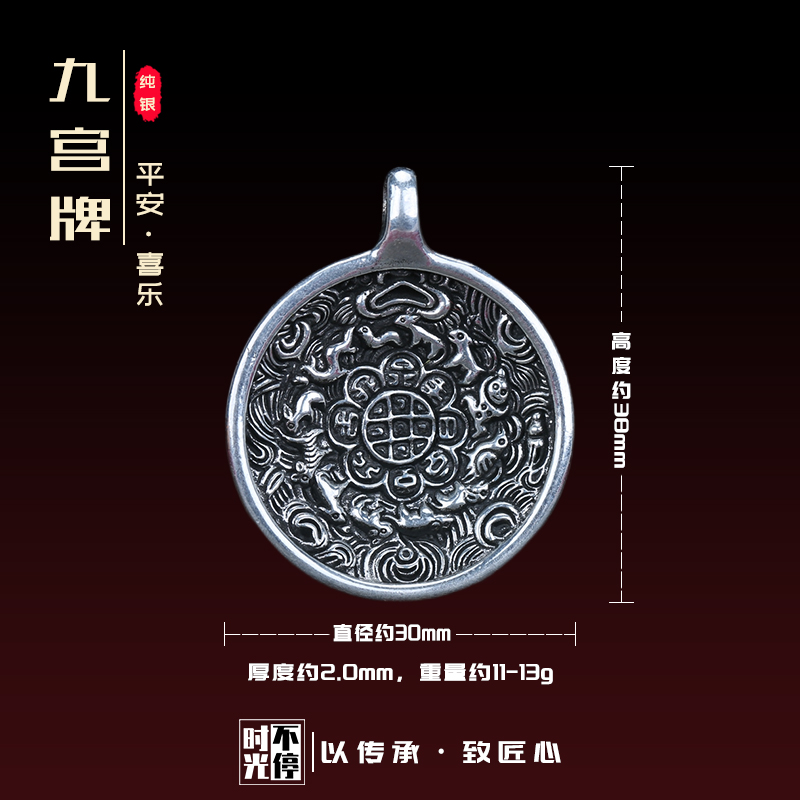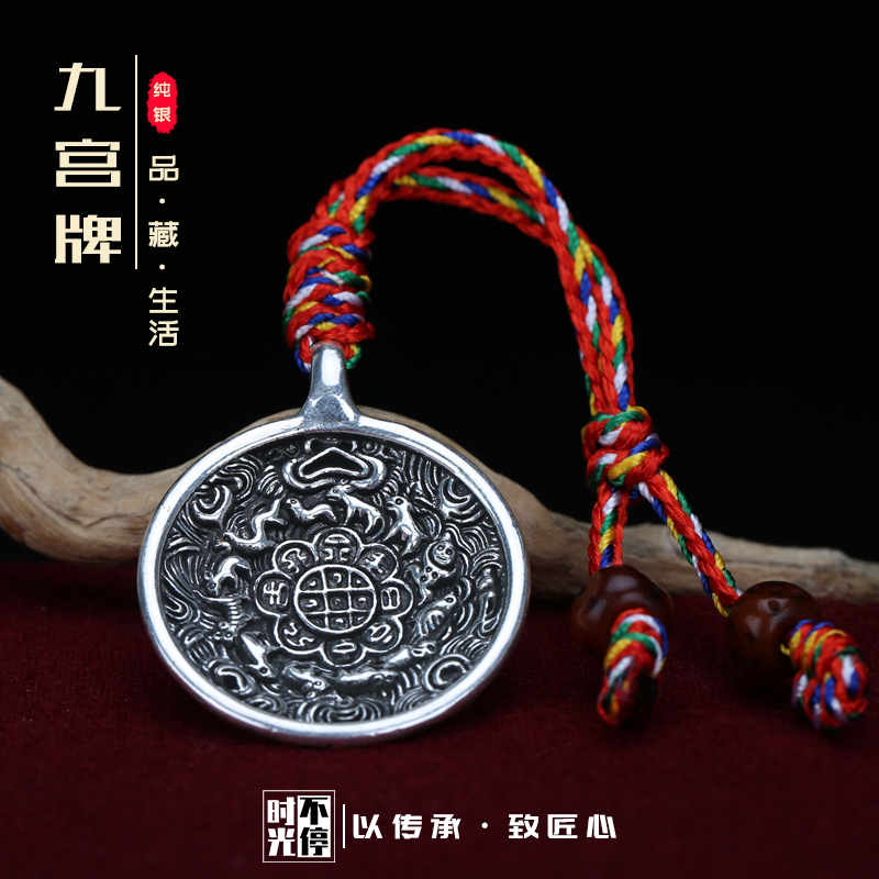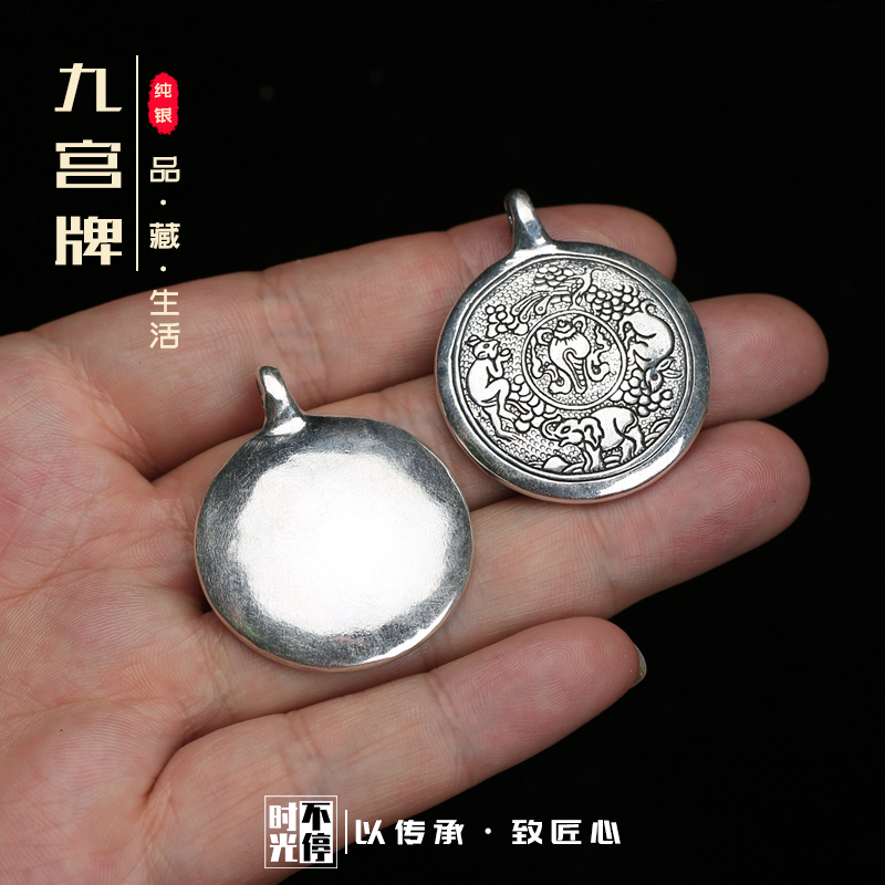 藏式手工足银朝天吼十二生肖九宫八卦牌吊坠本命年腰牌手机链饰品