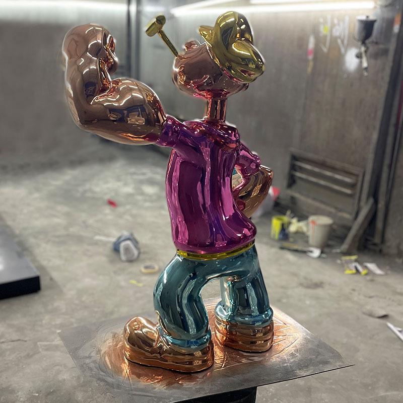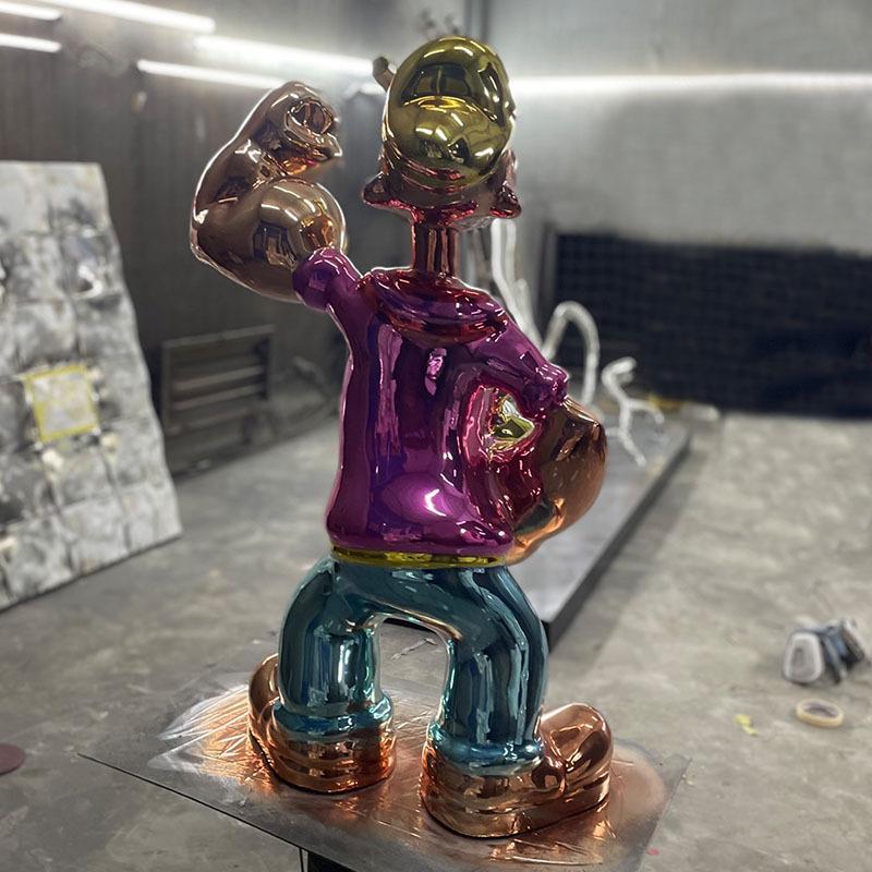 玻璃钢电镀大力水手雕塑树脂卡通人物模型摆件商业美陈办公装饰品