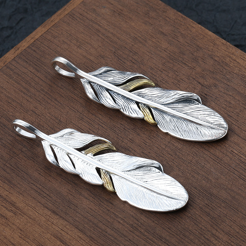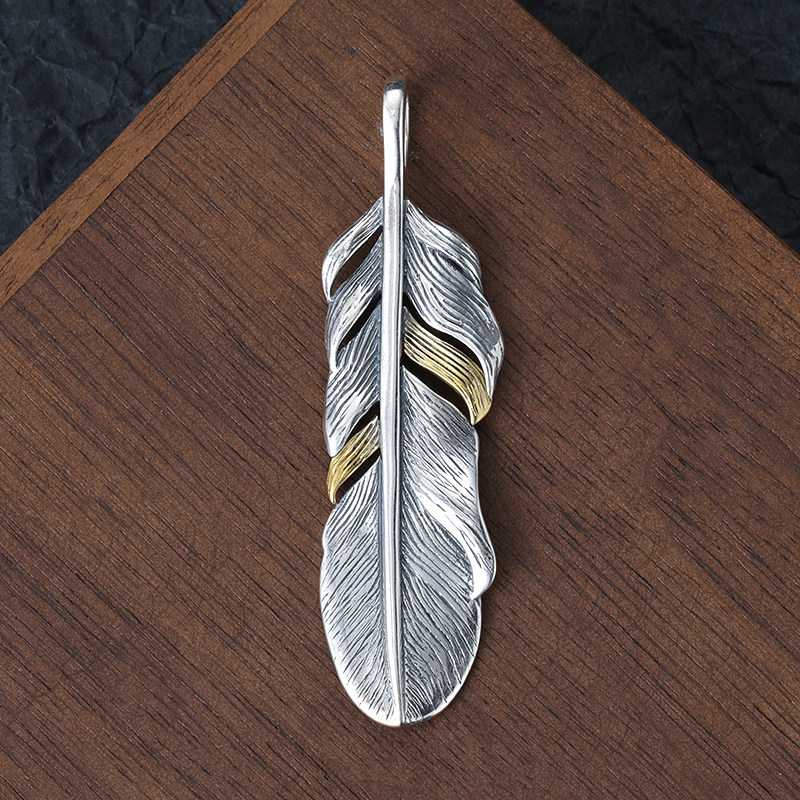 印第安风老鹰尾羽毛吊坠男 情侣小众百搭项链挂坠潮人925纯银配饰