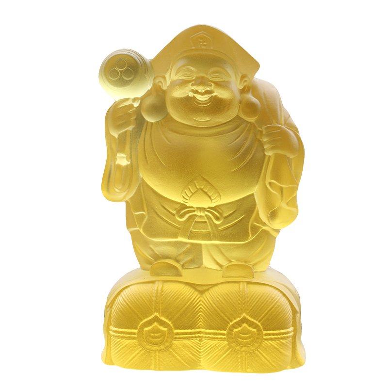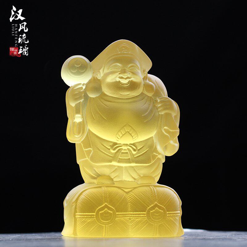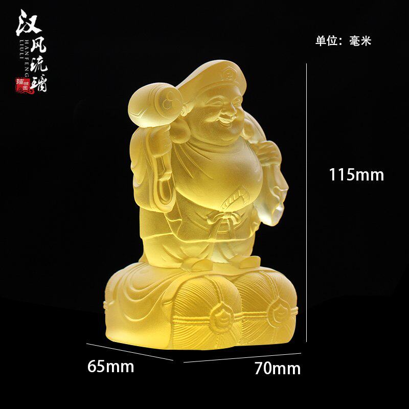 古法琉璃大黑天财神佛像佛堂供奉神像摆件手工琥珀色金黄色财神