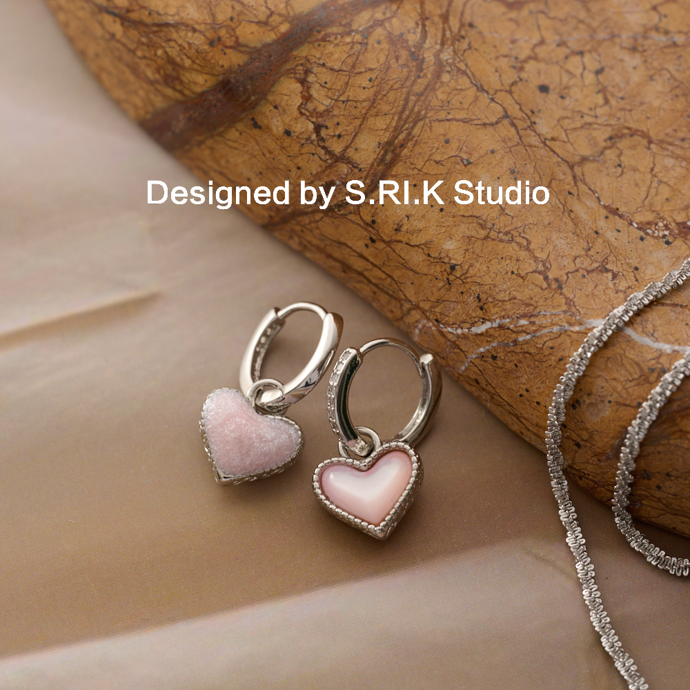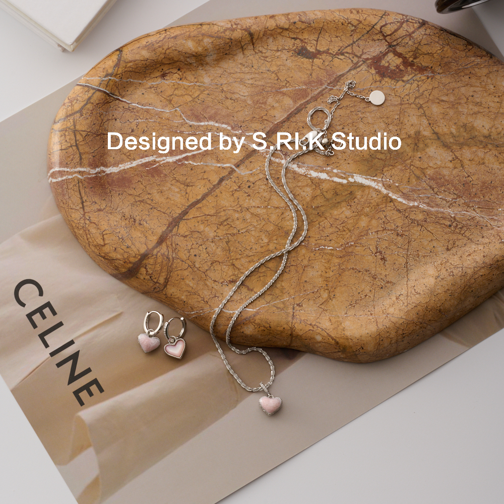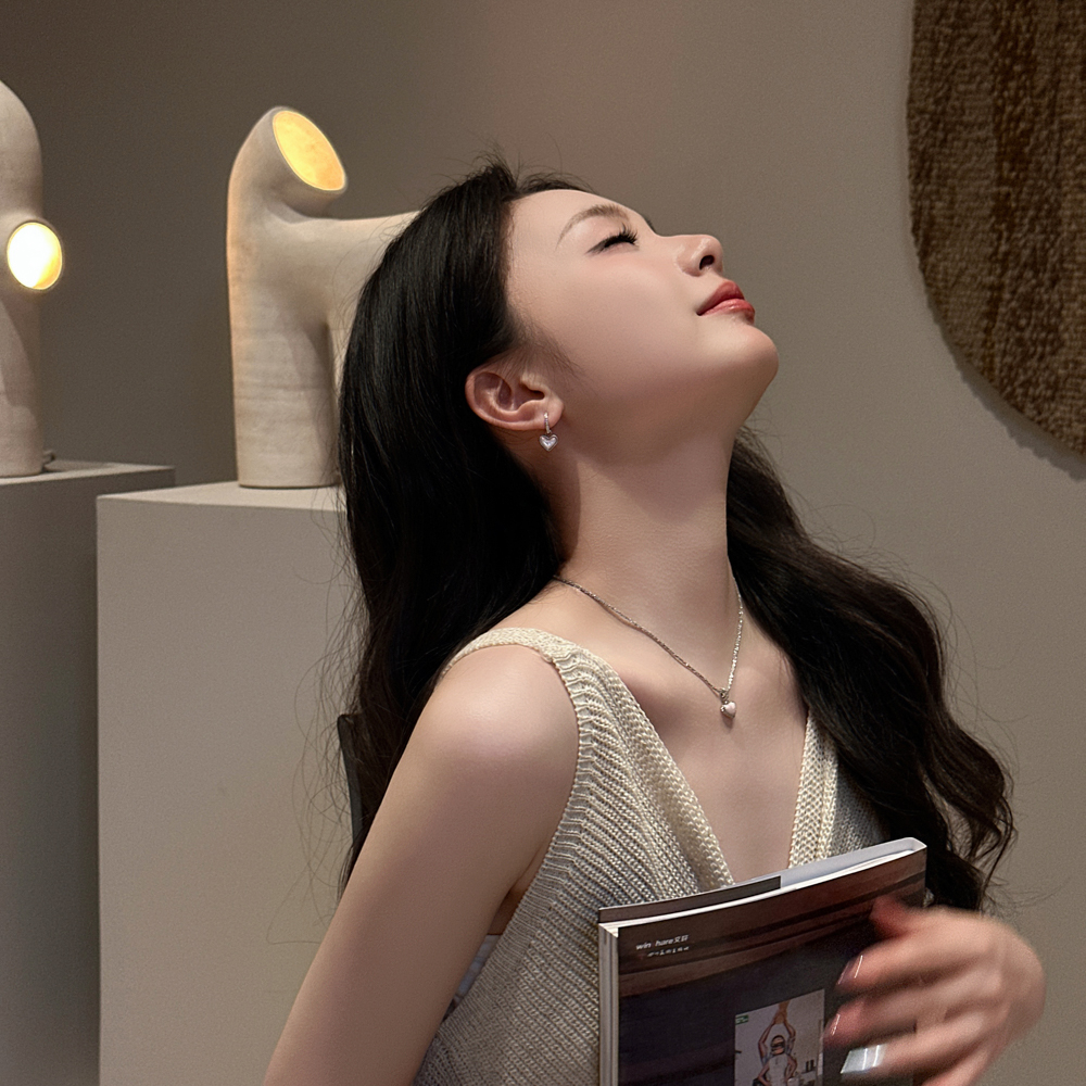 十里间【沙粉】甜美少女心爱心项链百搭锁骨链小清新耳环套装