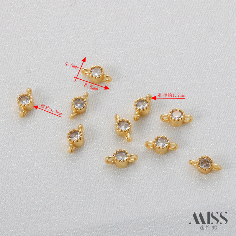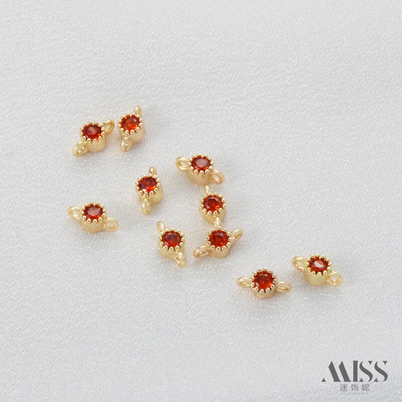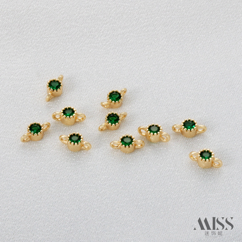 14K包金保色镶嵌3A彩色锆石双环吊坠diy双吊挂件手链耳环饰品配件