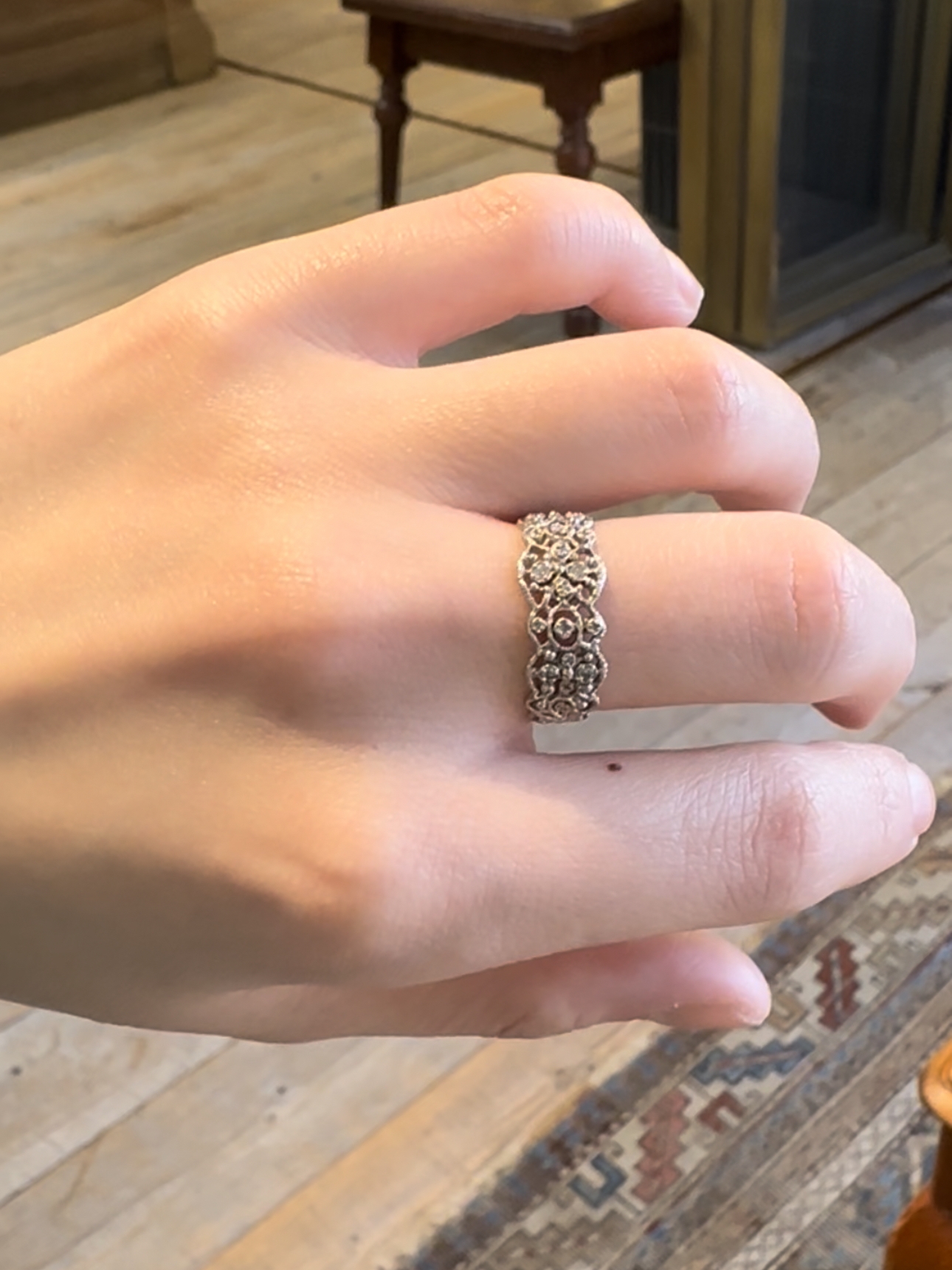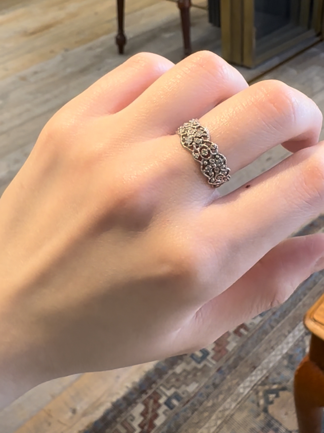 包税包邮日本代购noguchi23新手工蕾丝镂空钻石镶嵌复古宽面戒指