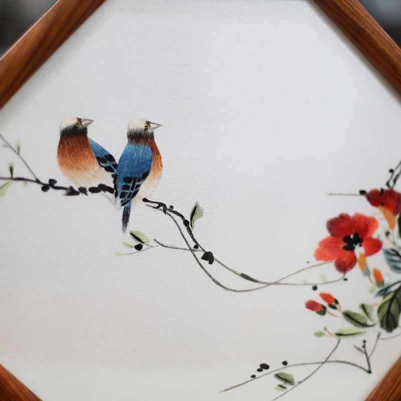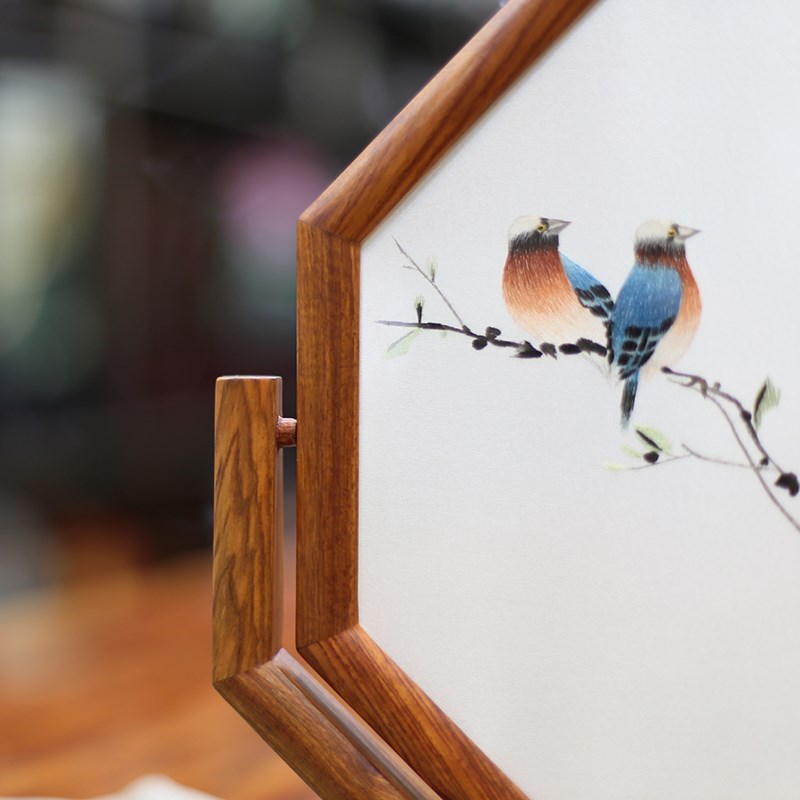 湘绣纯手工刺绣成品摆件双面绣台屏禅意中国风创意荷花鸟蜀绣苏绣