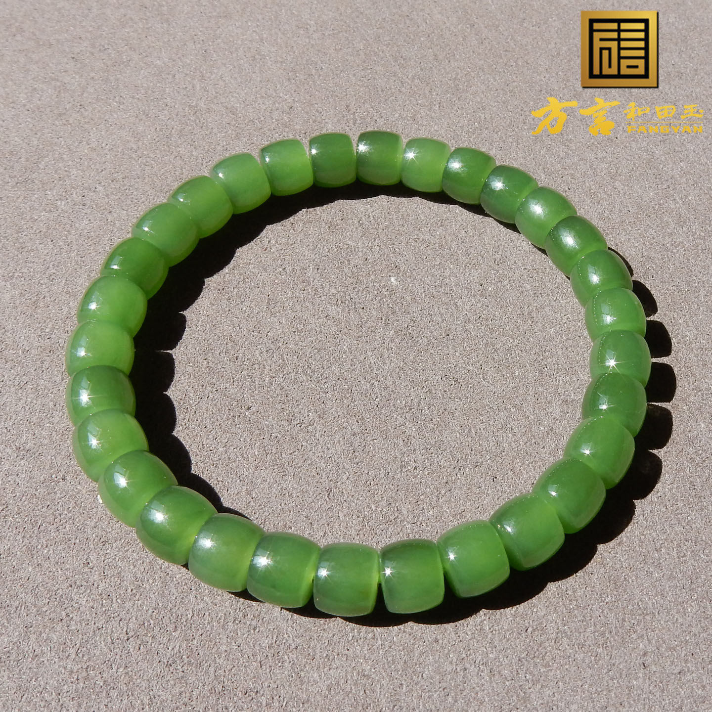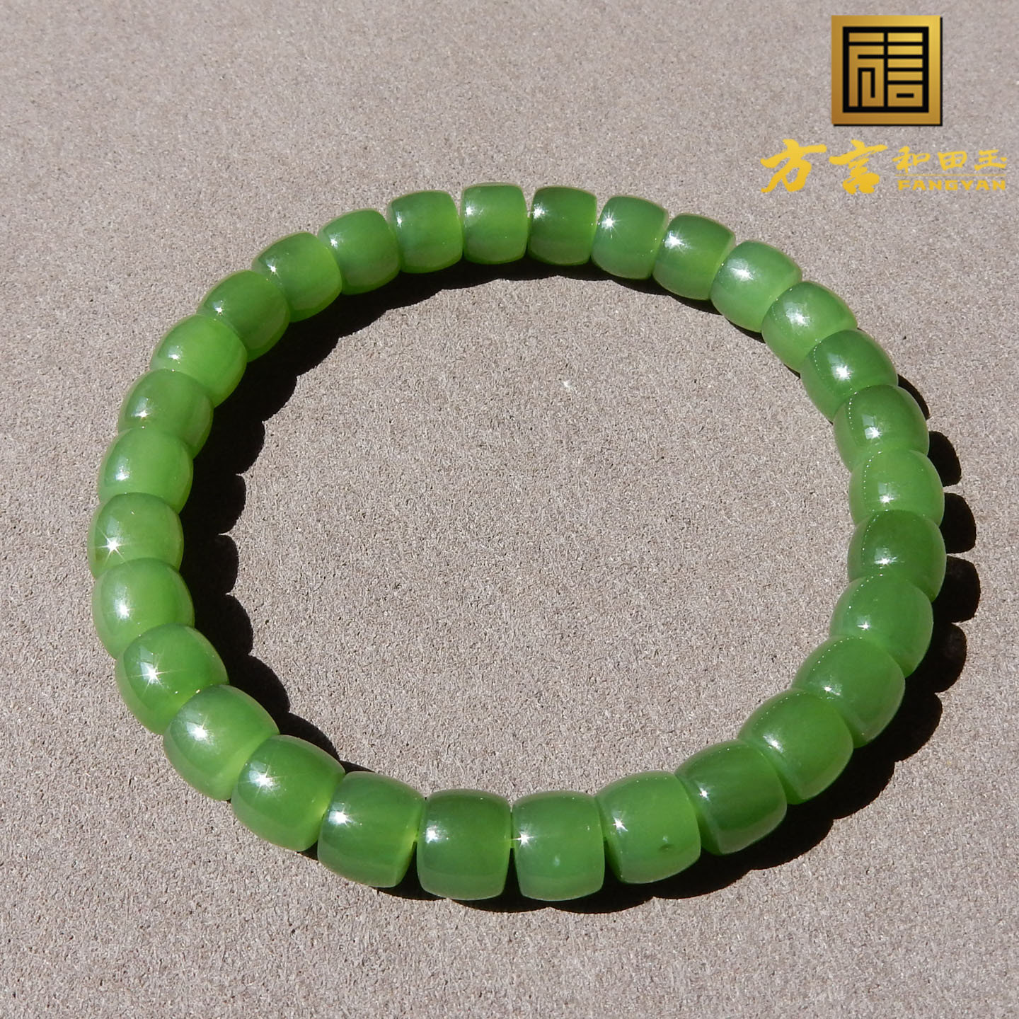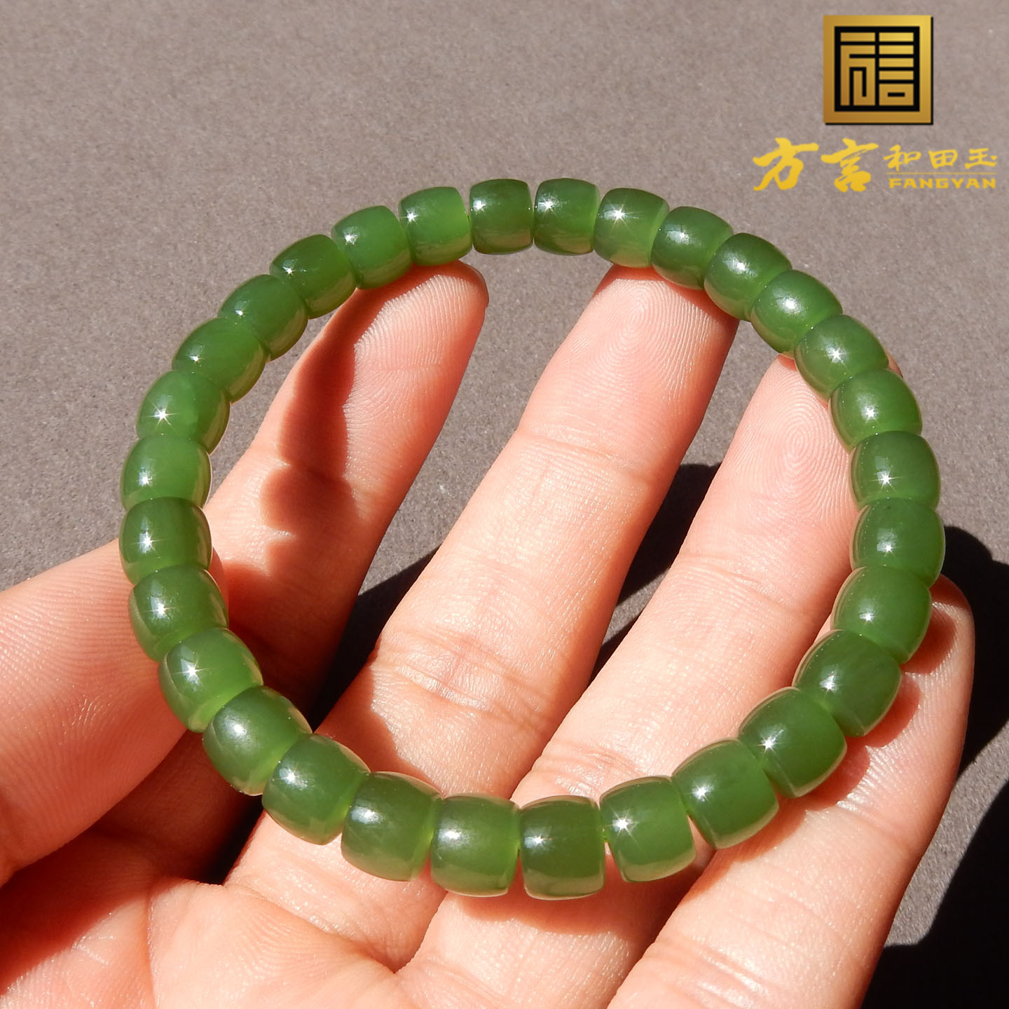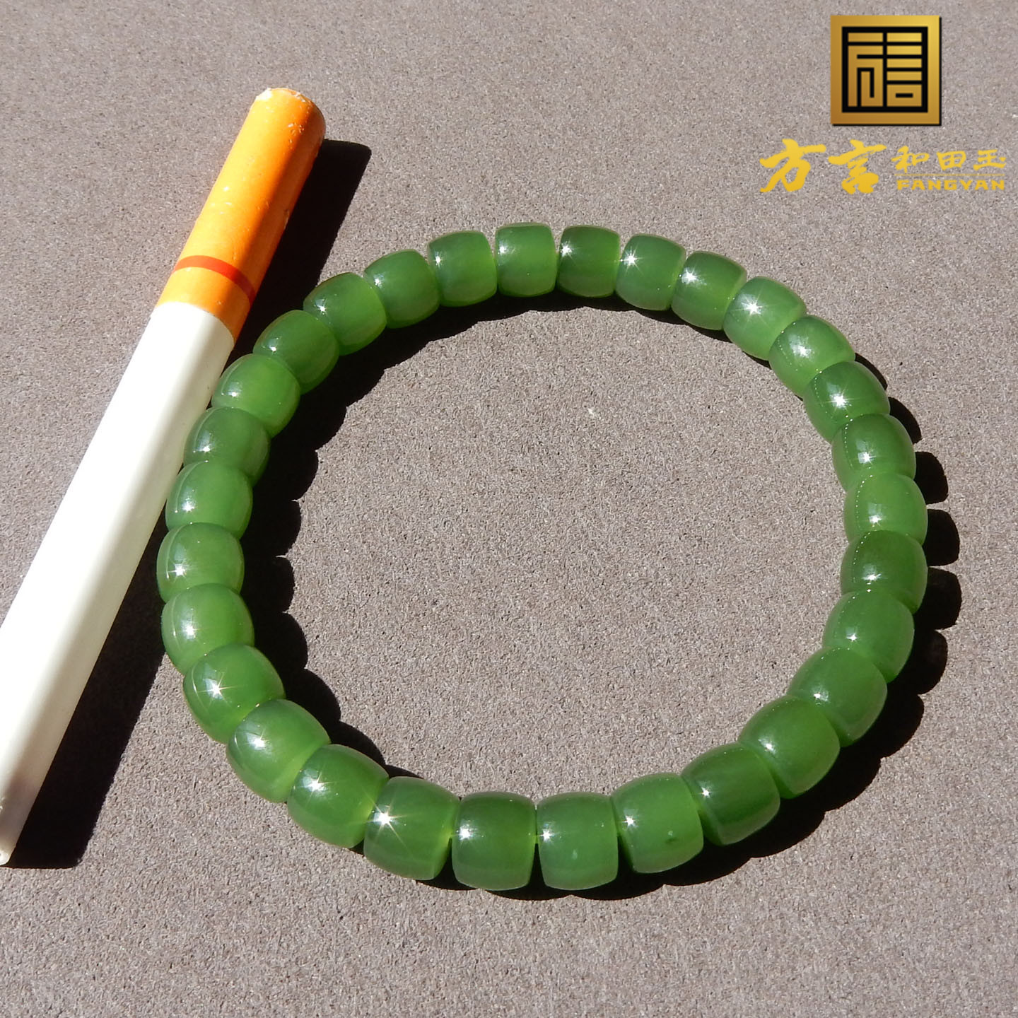 惊呆了方言和田玉俄罗斯特色老坑料辣阳绿色碧玉7mm直切手串手链w