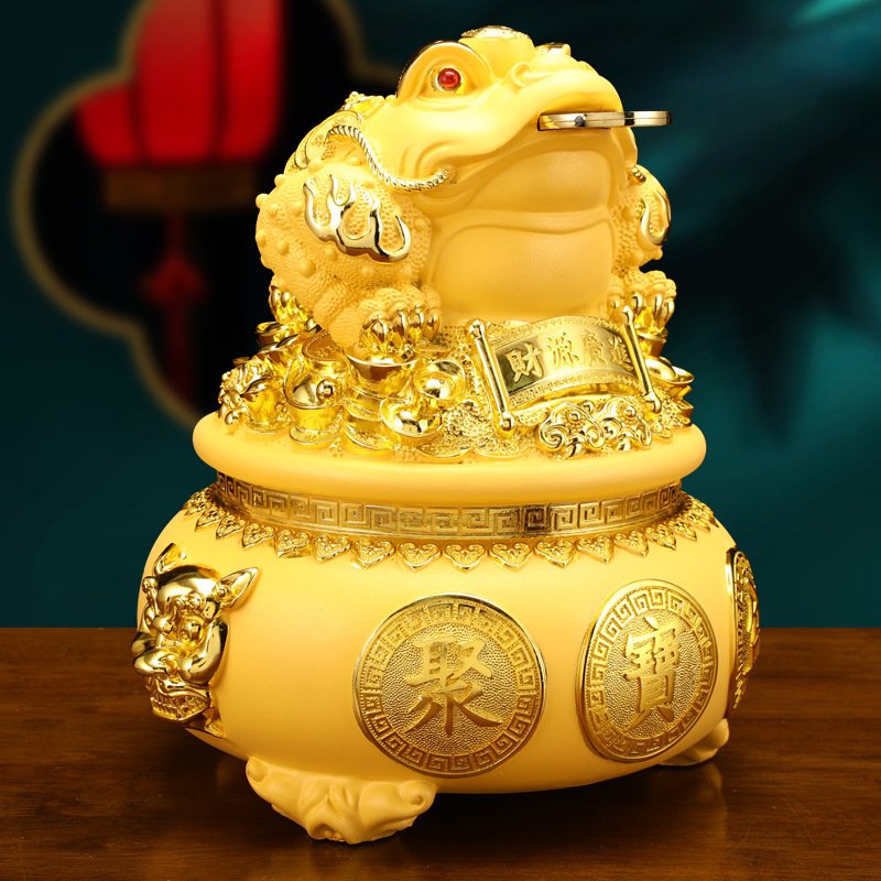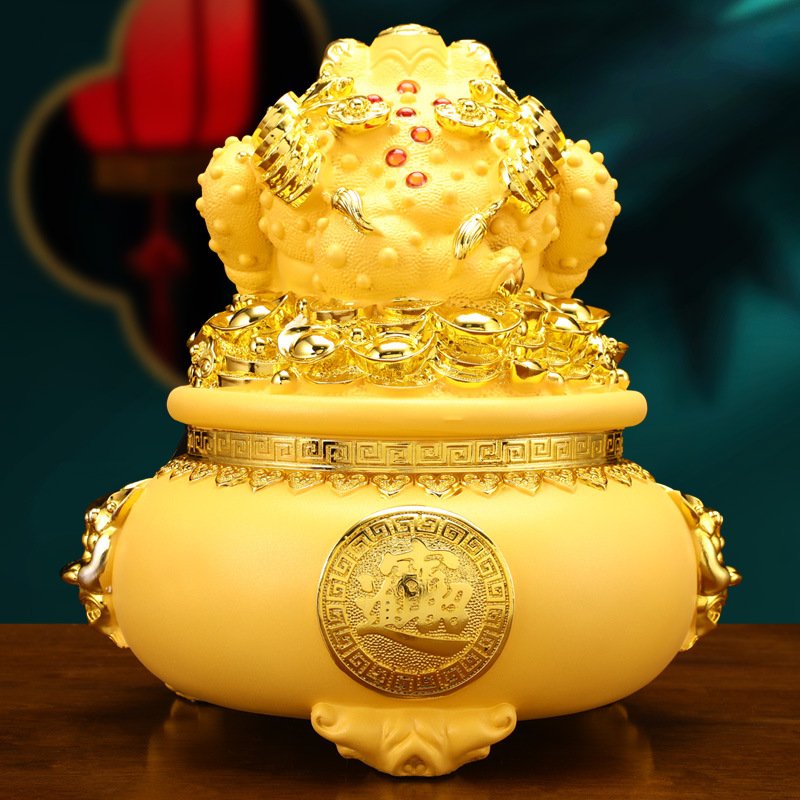 中式金蟾聚宝盆储蓄罐摆件客厅酒柜办公室装饰品摆设店铺开业礼品
