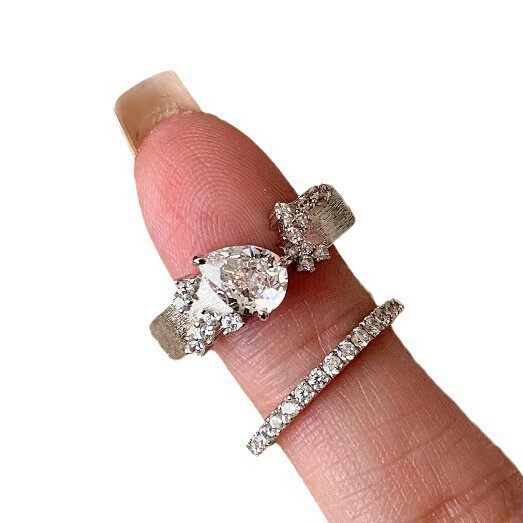 XBK钻戒指气质指环点女满钻精致水滴繁星戴百搭复古高级古风叠中