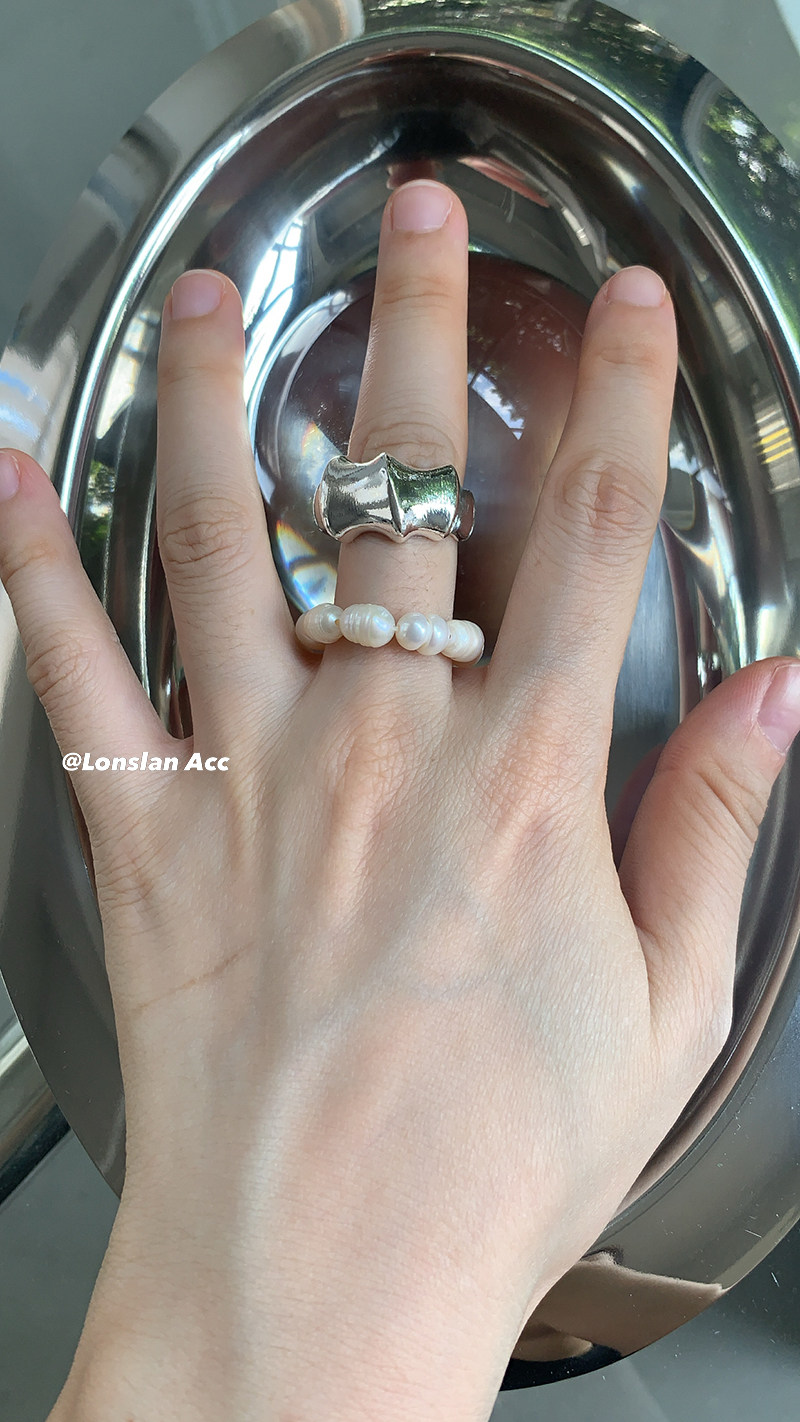 LONSLAN ACC 复古奶白珍珠串珠质感手工戒指