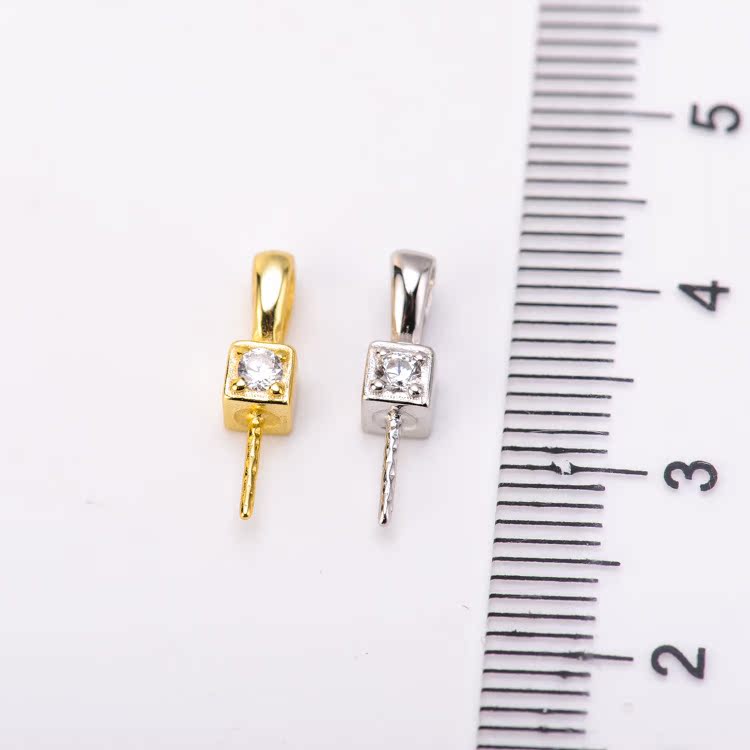 DIY配件 S925纯银时尚单钻吊坠项链空托 锁骨链坠头半成品配7-12m