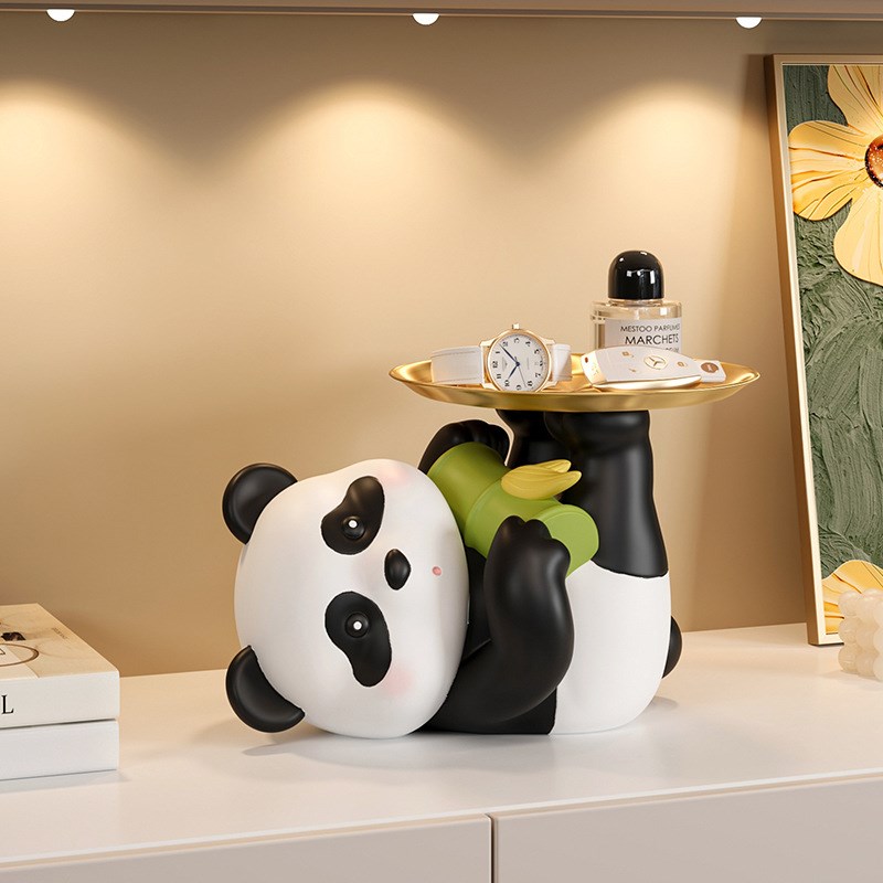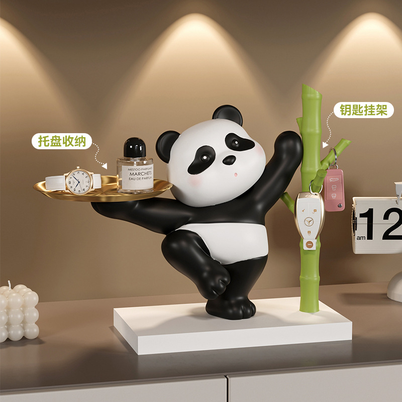 可爱熊猫入户玄关钥匙收纳摆件客厅进门鞋柜托盘置物架家居装饰品