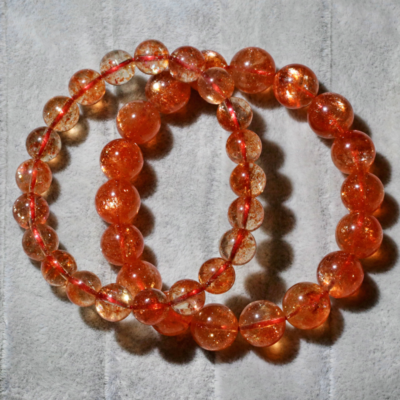 天然冰种爆闪金太阳日光石手链单圈饰品金草莓手串一物一图礼物女