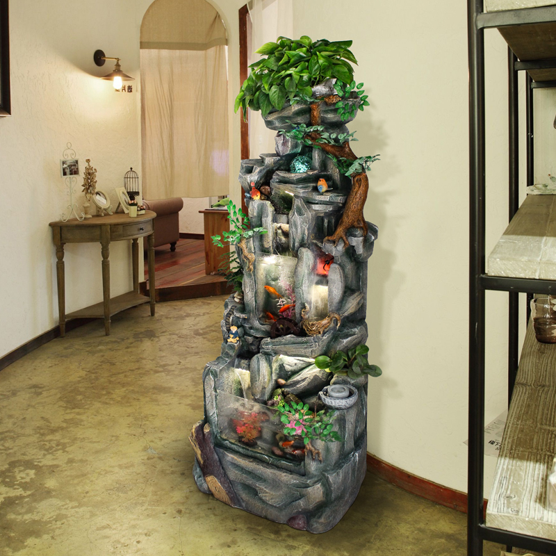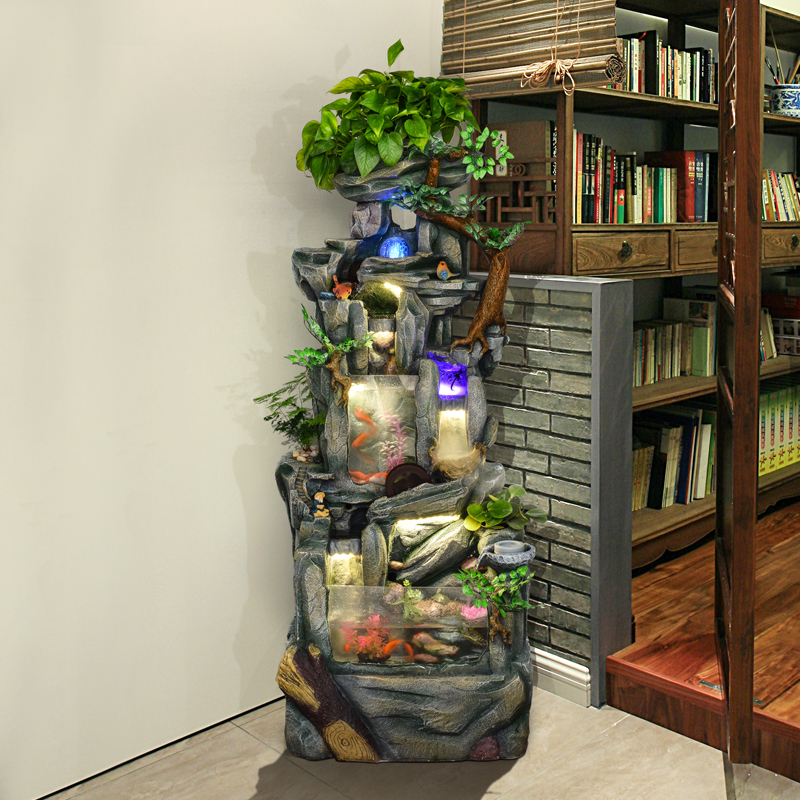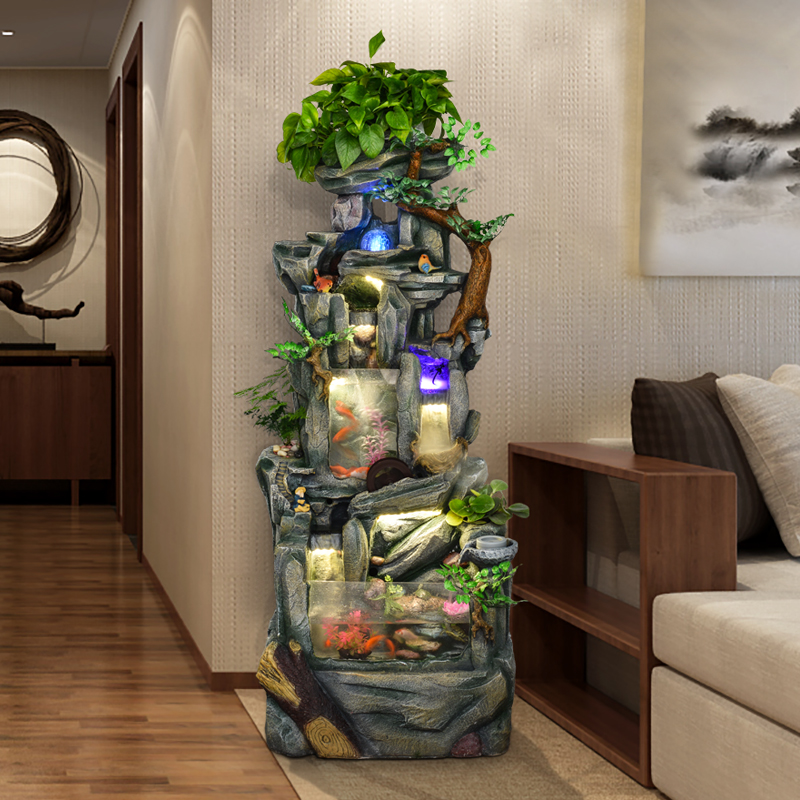 假山流水招财欧式喷泉鱼缸装饰客厅室内创意结婚开业大型落地摆件