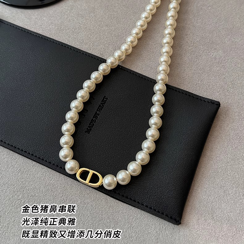 施家金色猪鼻子珍珠项链女小众设计高级颈链2025年新款爆款锁骨链