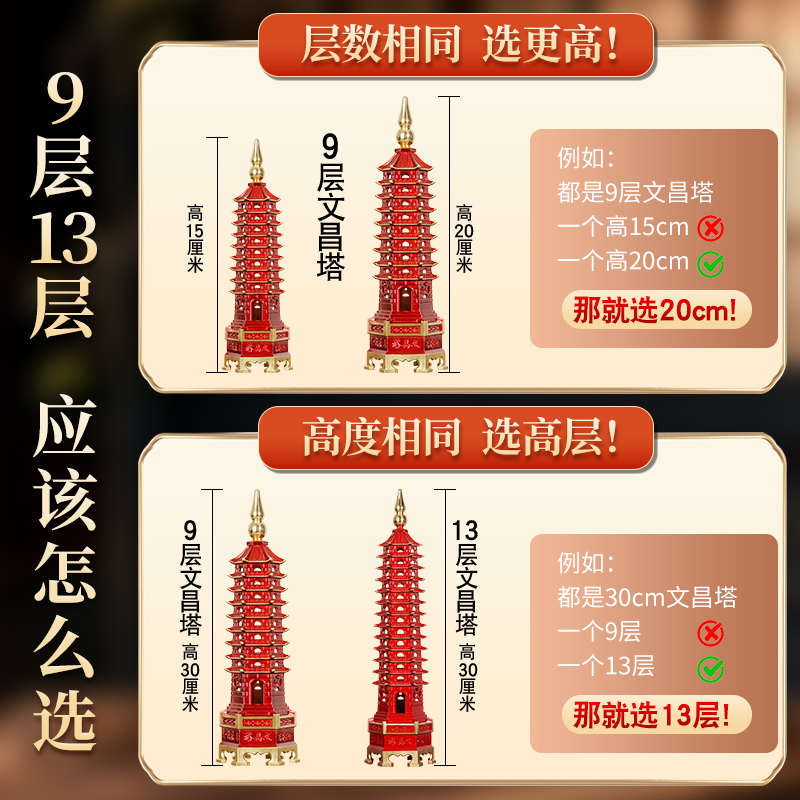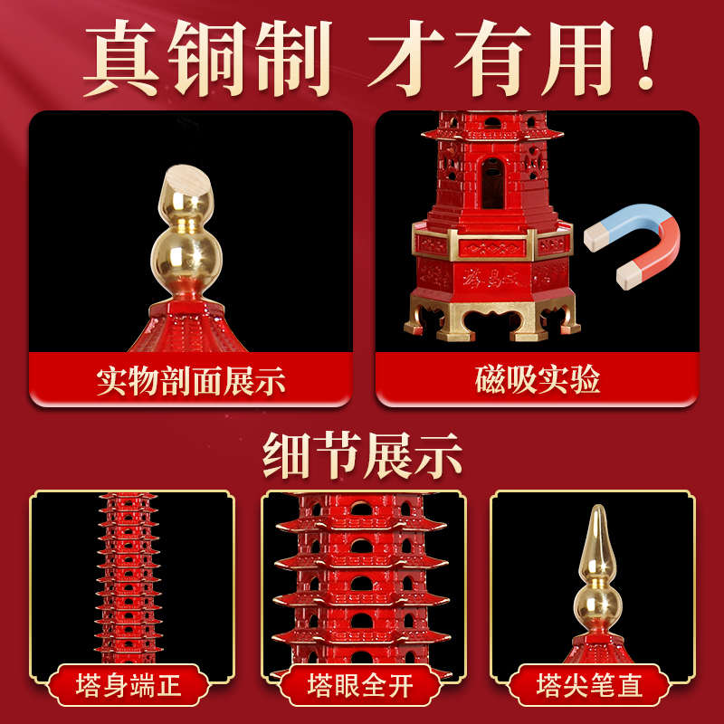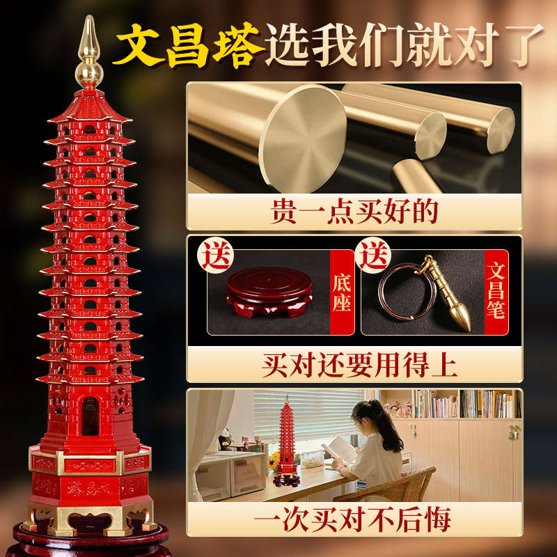 铜文昌塔摆件红色7层9层13层送底座文昌笔办公室书房装饰工艺品