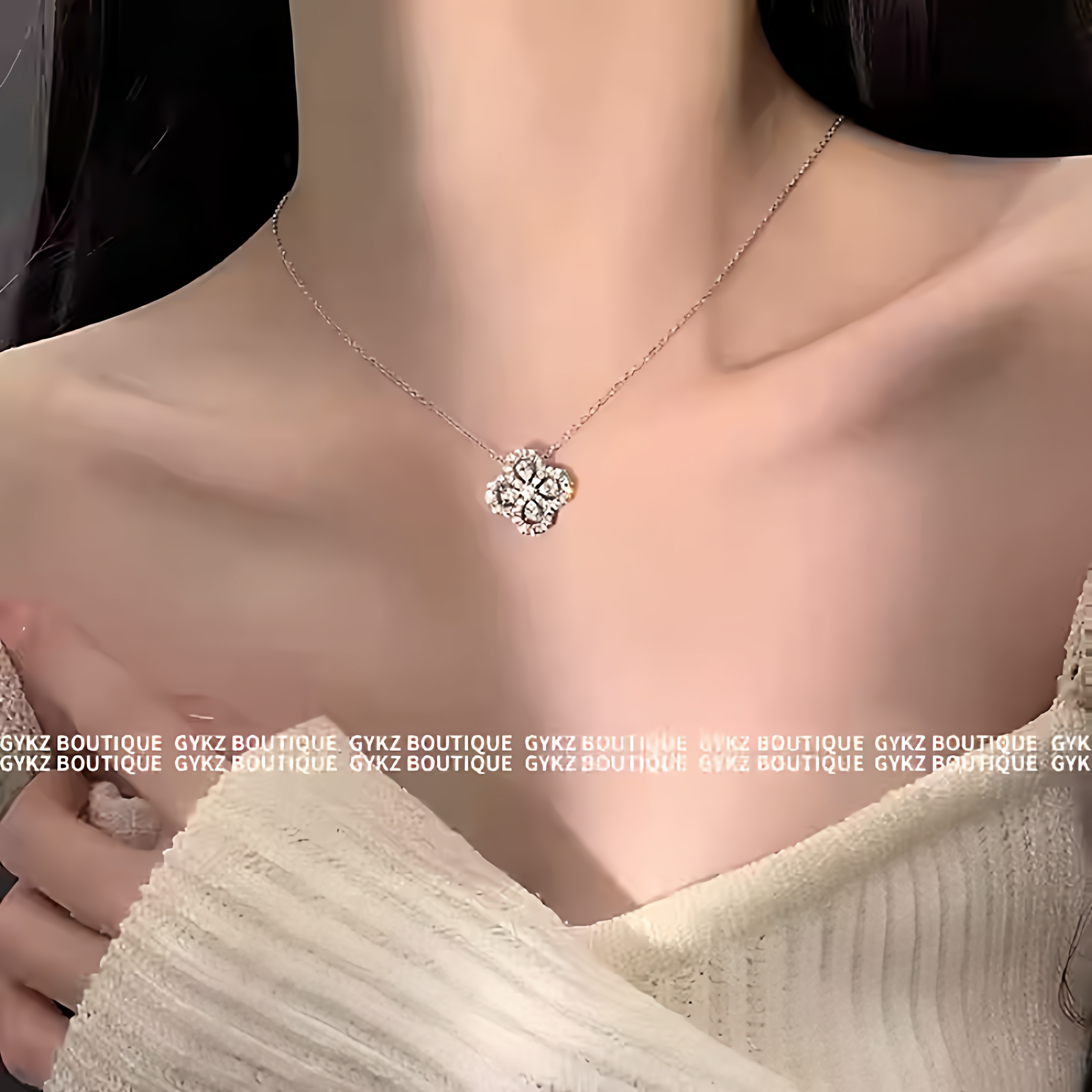 顶版高定满钻四叶草项链女轻奢高级感小众设计锁骨链吊坠明星同款