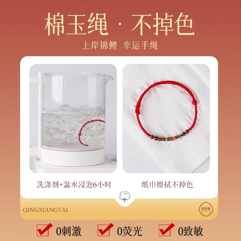 【普陀山直发】上岸锦鲤天然朱砂红绳手链女款考试本命年情侣礼物