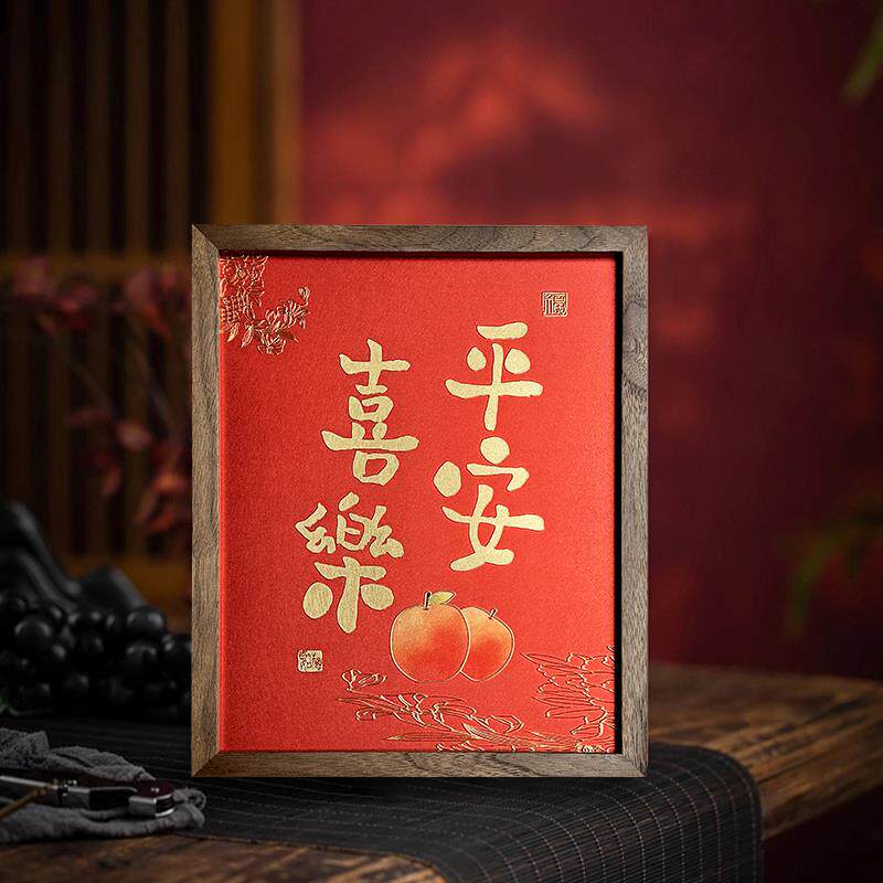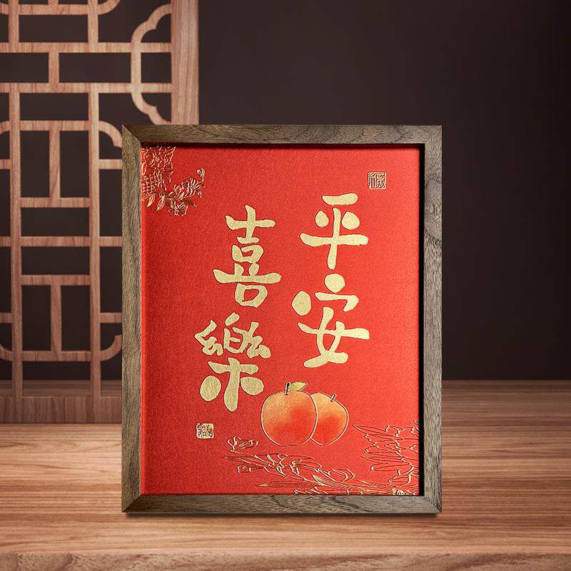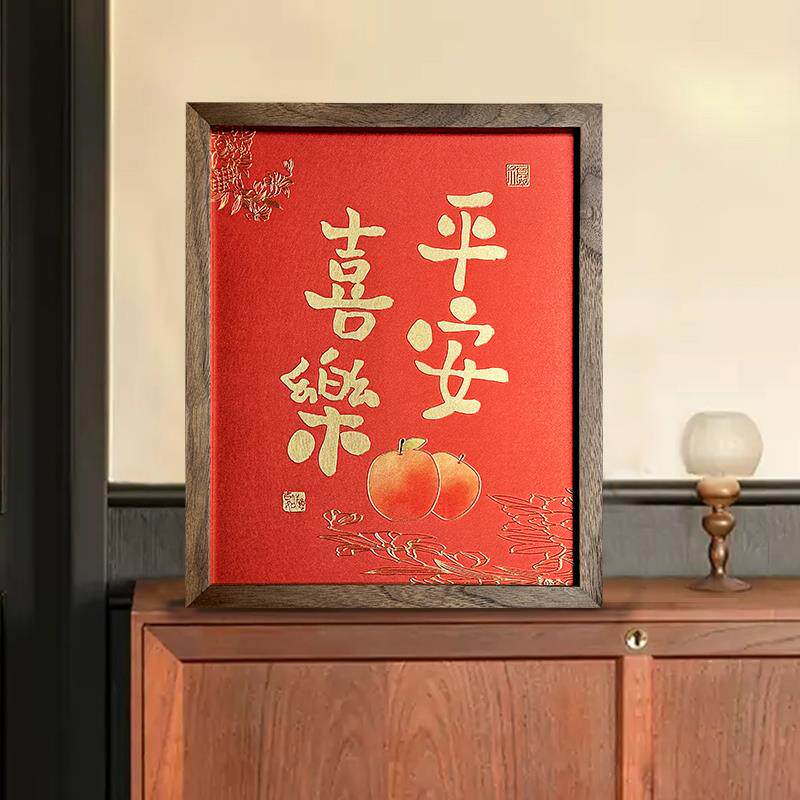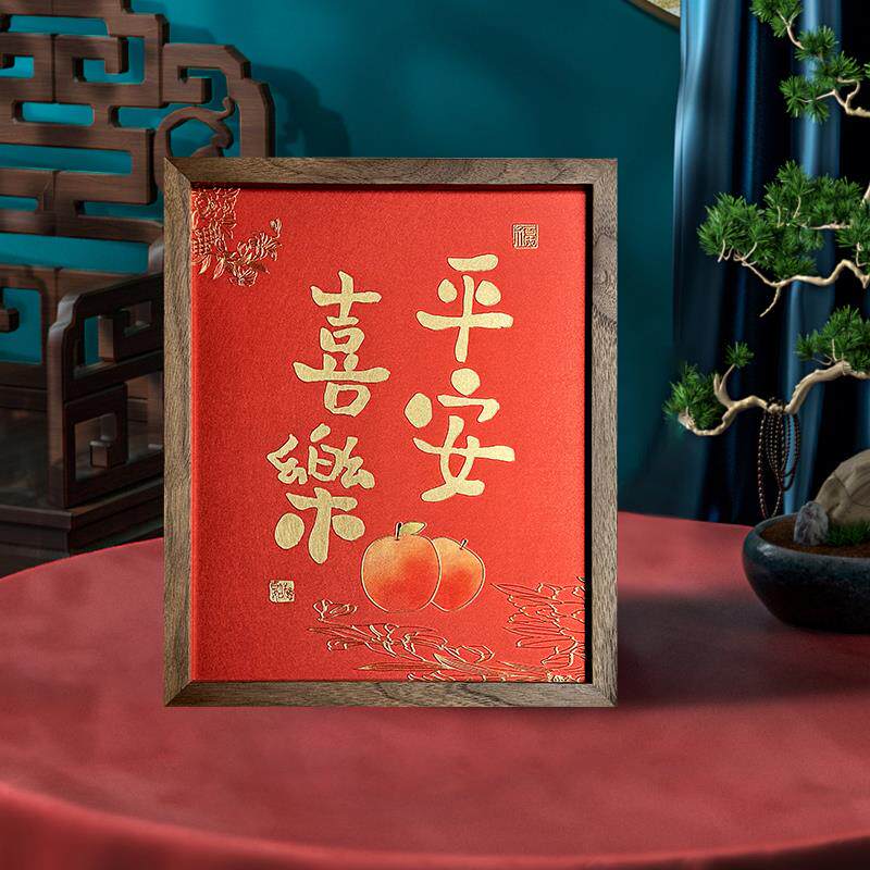 善美《平安喜乐》新中式高级桌面黄铜福字摆件办公室装饰画铜版画
