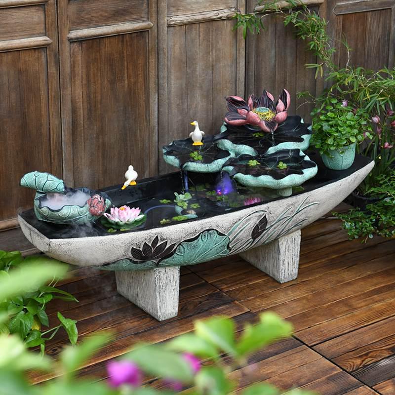 庭院小水景布置阳台摆件流水户外鱼池造景室外循环水鱼缸水系景观