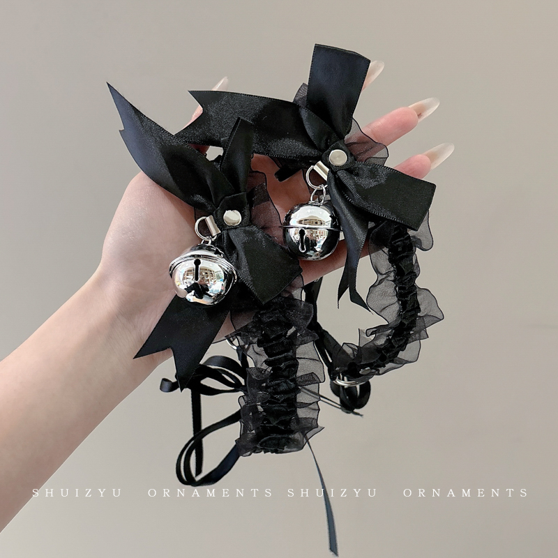 黑色纯欲猫耳朵发箍头饰女蕾丝眼罩情趣铃铛项圈可爱性感兽耳发卡