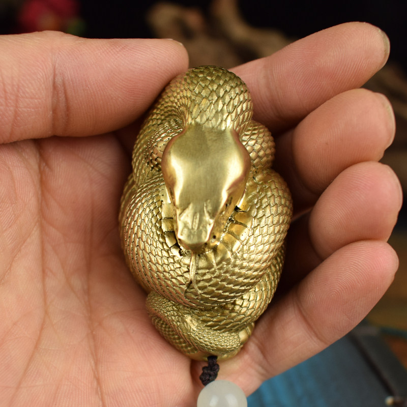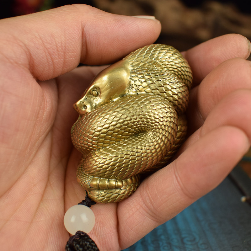 全黄铜实心生肖蛇男女随身手把件文玩小摆件挂件腰缠万贯工艺品