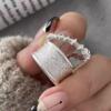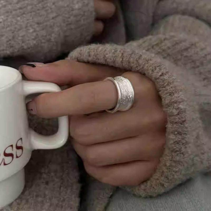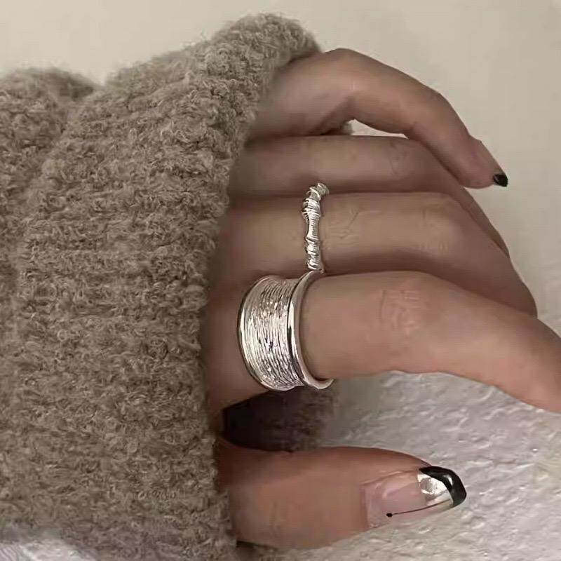 重工肌理纹开口戒指女宽边韩国东大门手工款简约厚重食指指环饰品