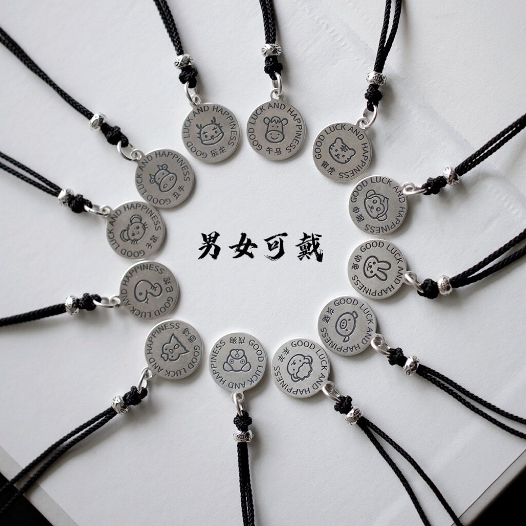 十二生肖本命年马999足银属相挂件实心纯银牌项链情侣吊坠男女款