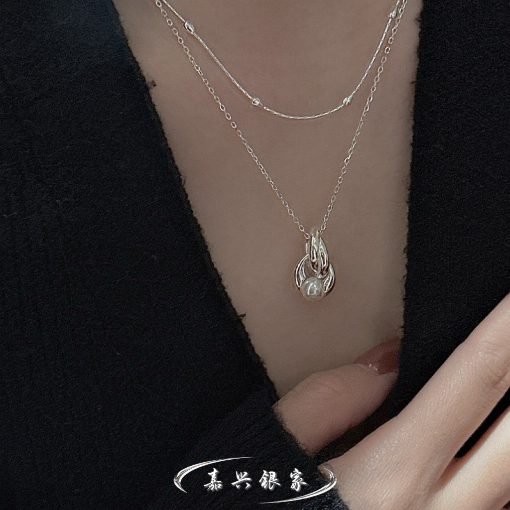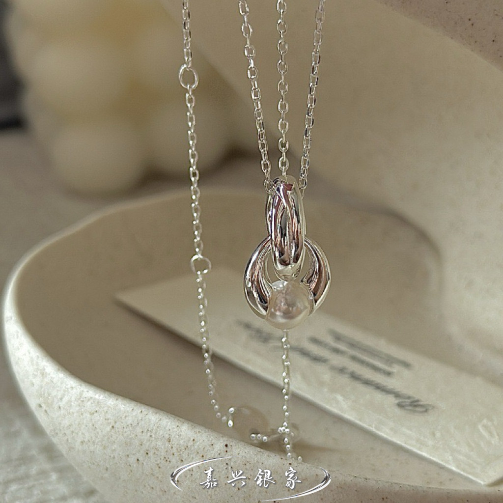 嘉兴银家s925纯银小众设计感施家珍珠项链女韩式风复古简约锁骨链