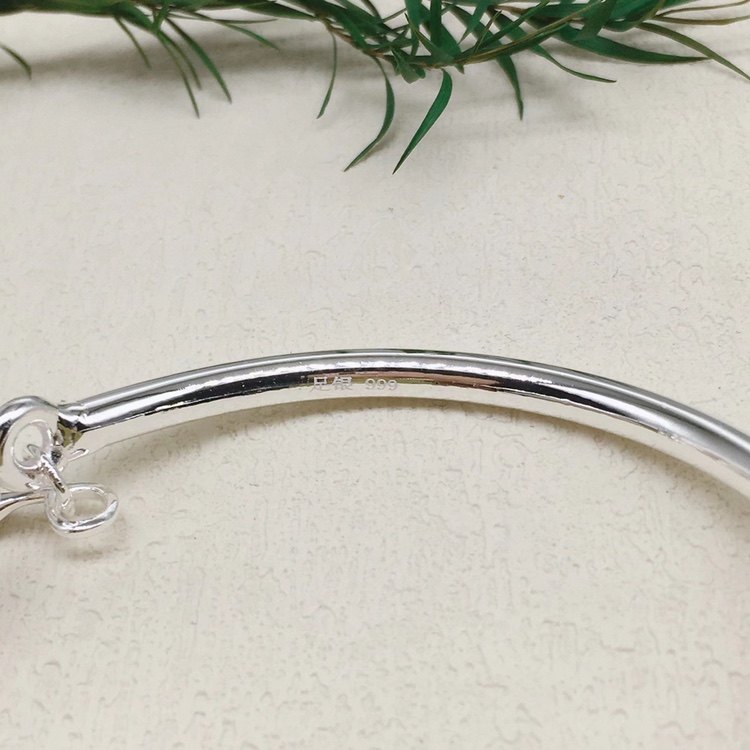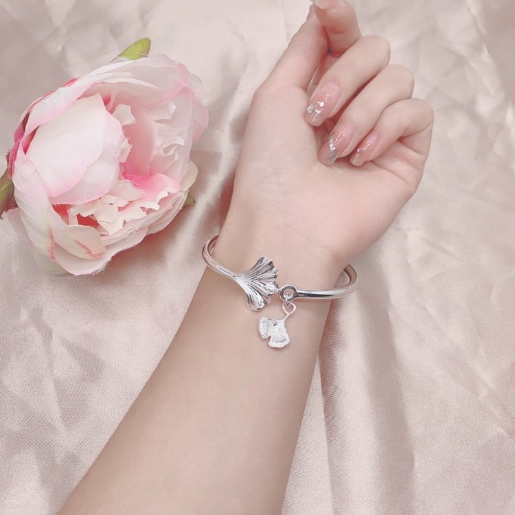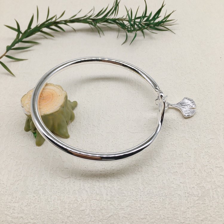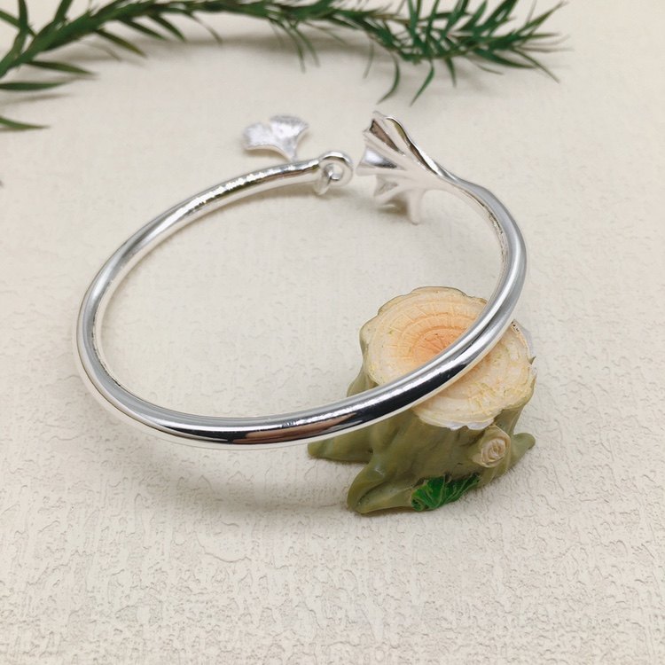 胜银·新款纯银手镯开口处带枫叶吊坠枫叶象征着爱情永恒足银999