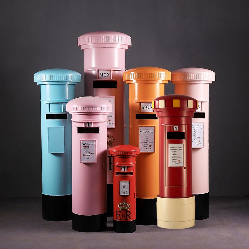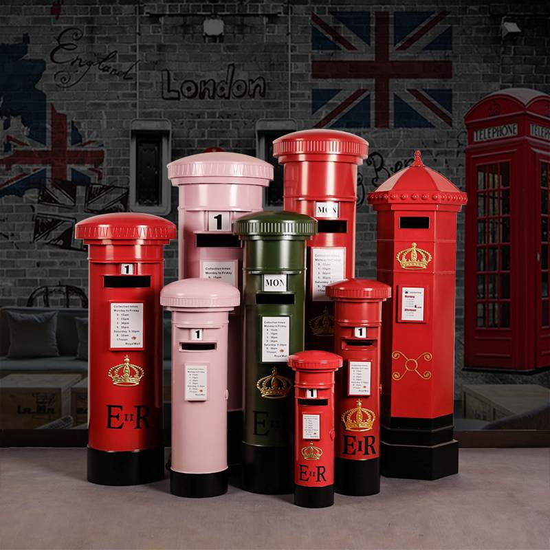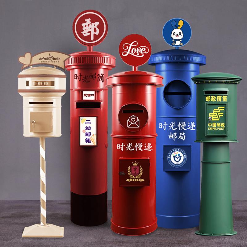 复古铁艺邮筒摆件邮桶邮政信箱模型服装店酒吧道具落地装饰品邮箱