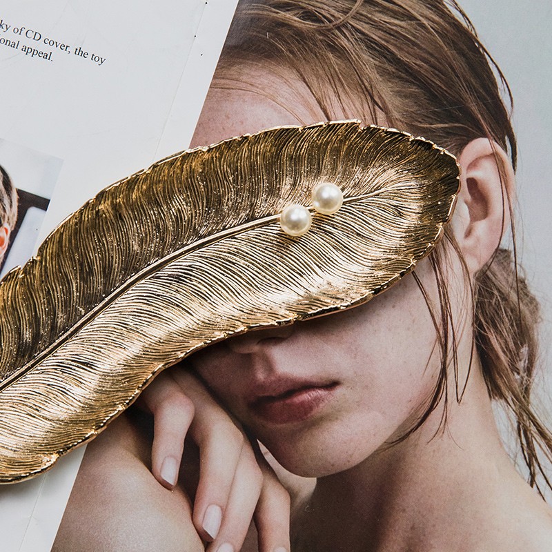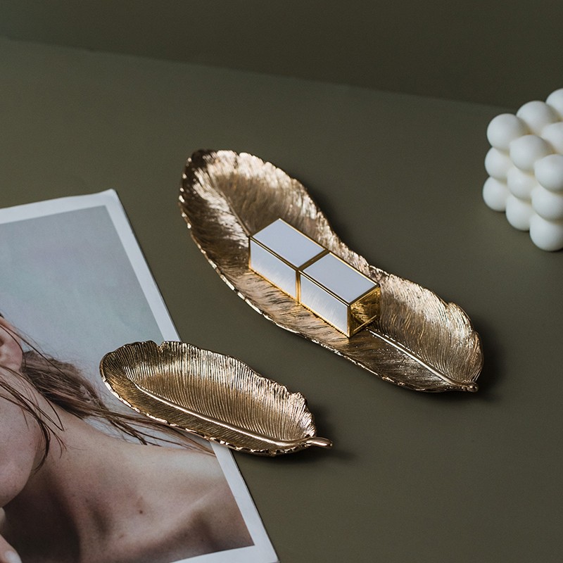美式轻奢玄关钥匙收纳托盘品质精致梳妆台金属羽毛U桌面装饰品摆
