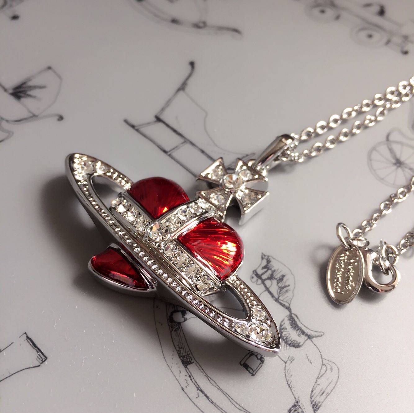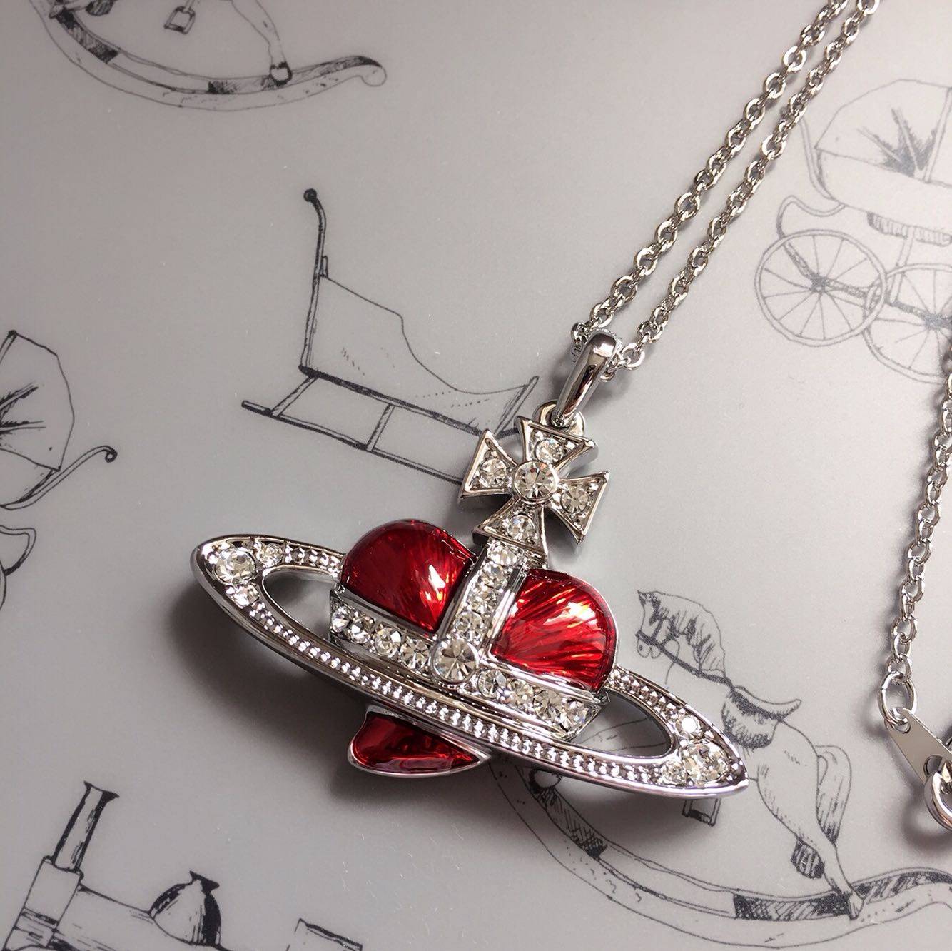 欧美饰品首饰情人七夕大号红色土星项链/毛衣链l046包邮