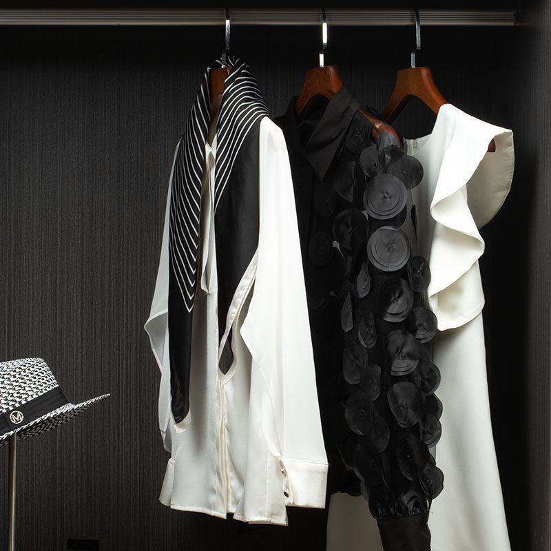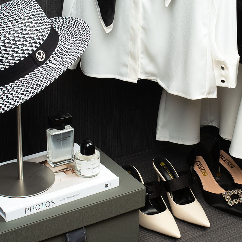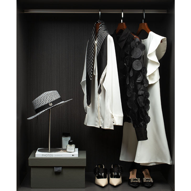 现代样板房衣帽间摆件套装黑白色系衣柜搭配衣服包包软装饰品组合