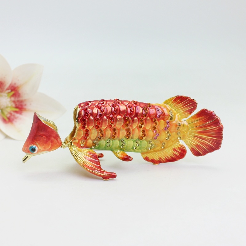 合金工艺品珐琅彩镶钻金龙鱼创意装饰玄关办公室桌面摆件送长辈