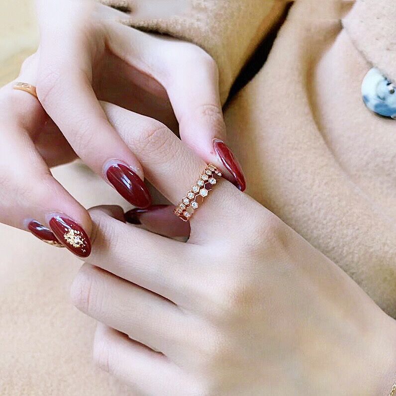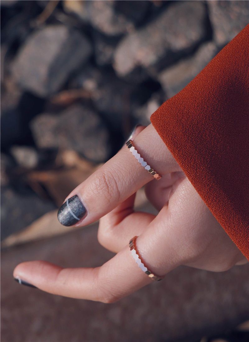 网红新款时尚潮人蜂巢蜂窝菱形几何玫瑰金钛钢戒指指环女款食指