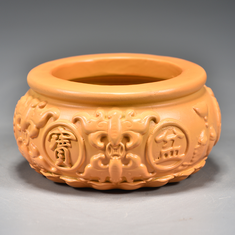实木雕刻黄色聚宝盆摆件乔迁家居客厅木质装饰开业送礼红木工艺品