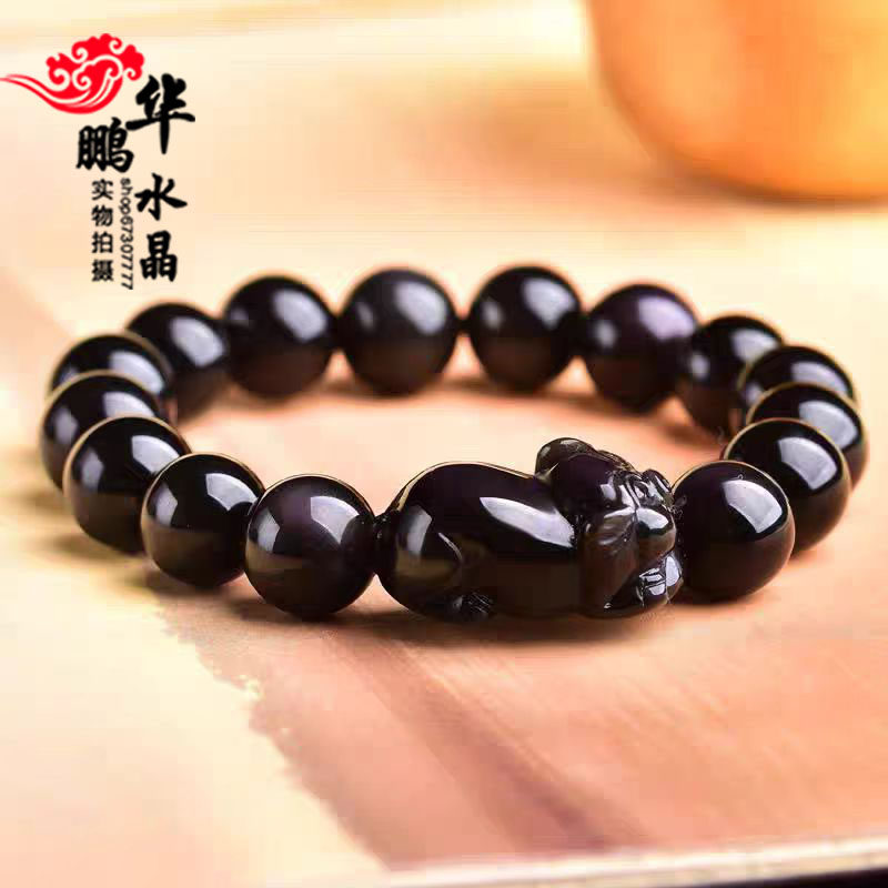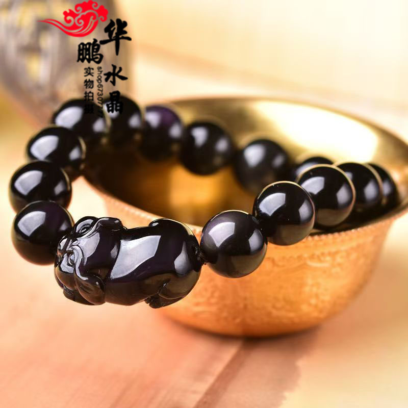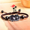 天然黑曜石生肖猪手链金耀石本命年招财聚财运转福禄佑猪平安手串