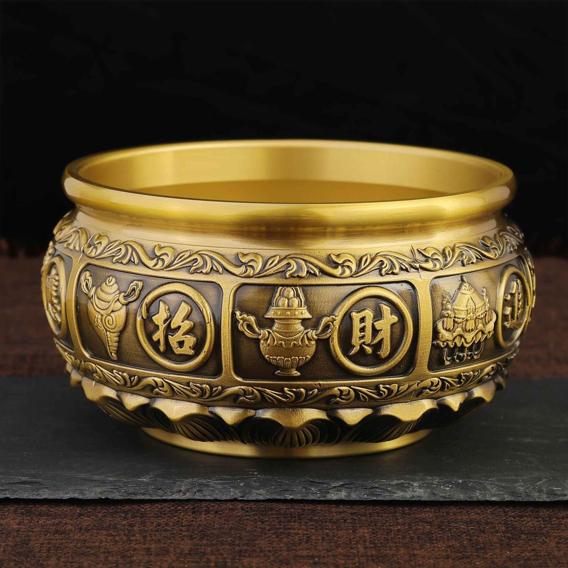 爆款黄铜莲花底有求必应聚宝盆客厅店铺办公室开业礼品玄关客厅摆