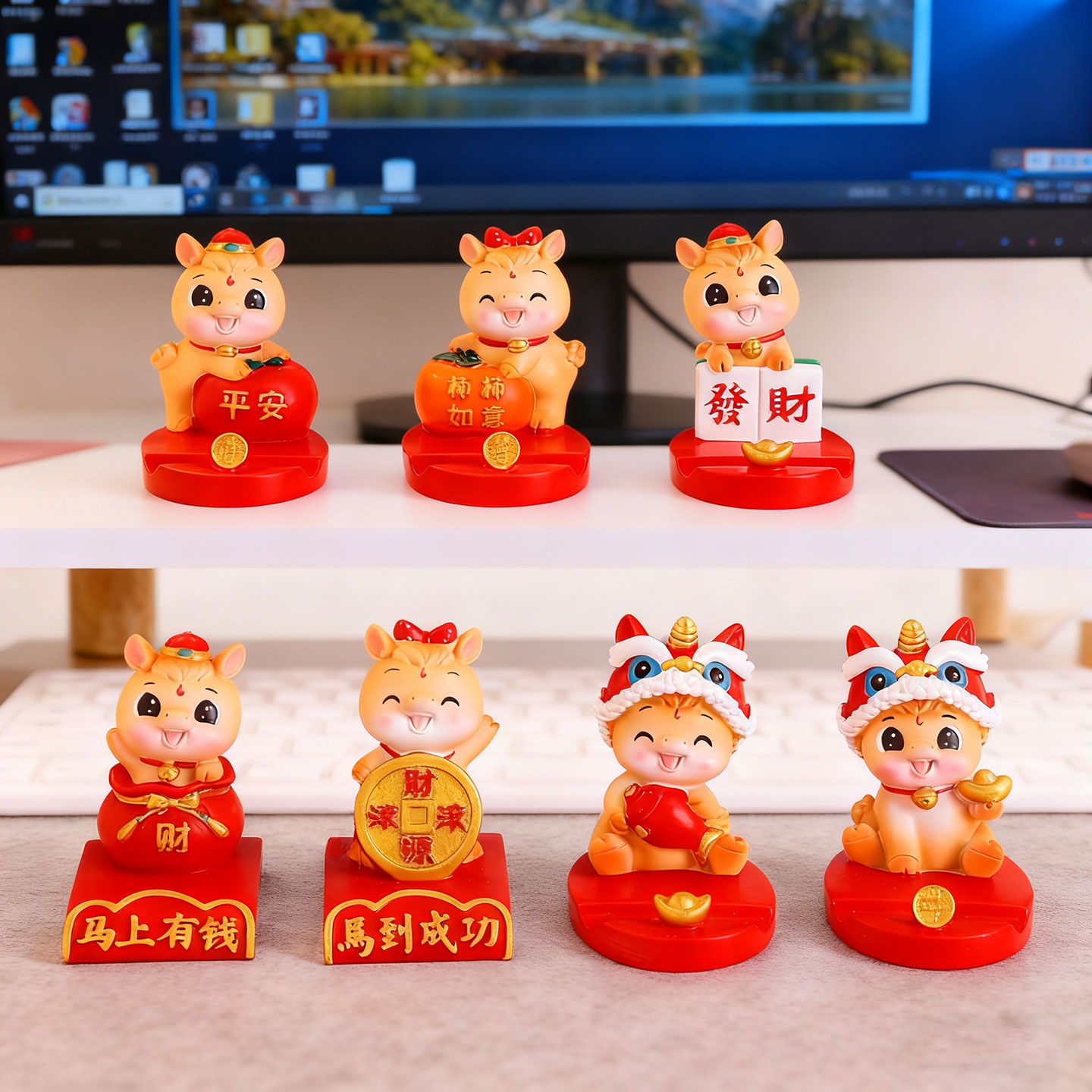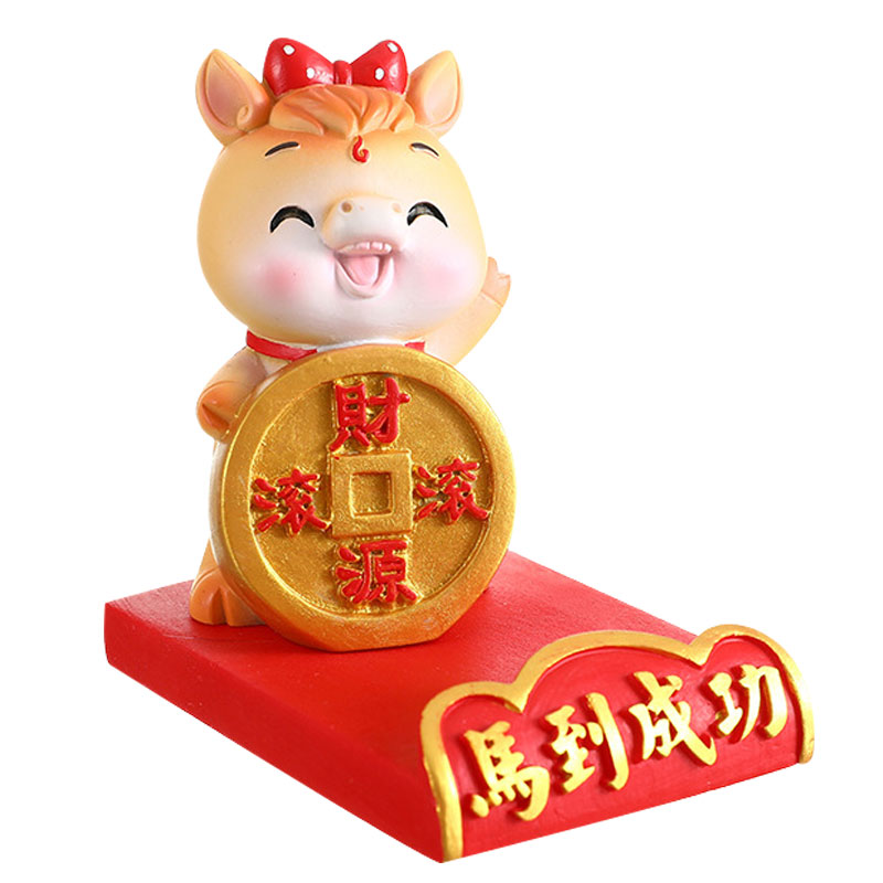 2026国潮马年手机支架马上有钱办公桌面招财新年礼物车载摇头摆件