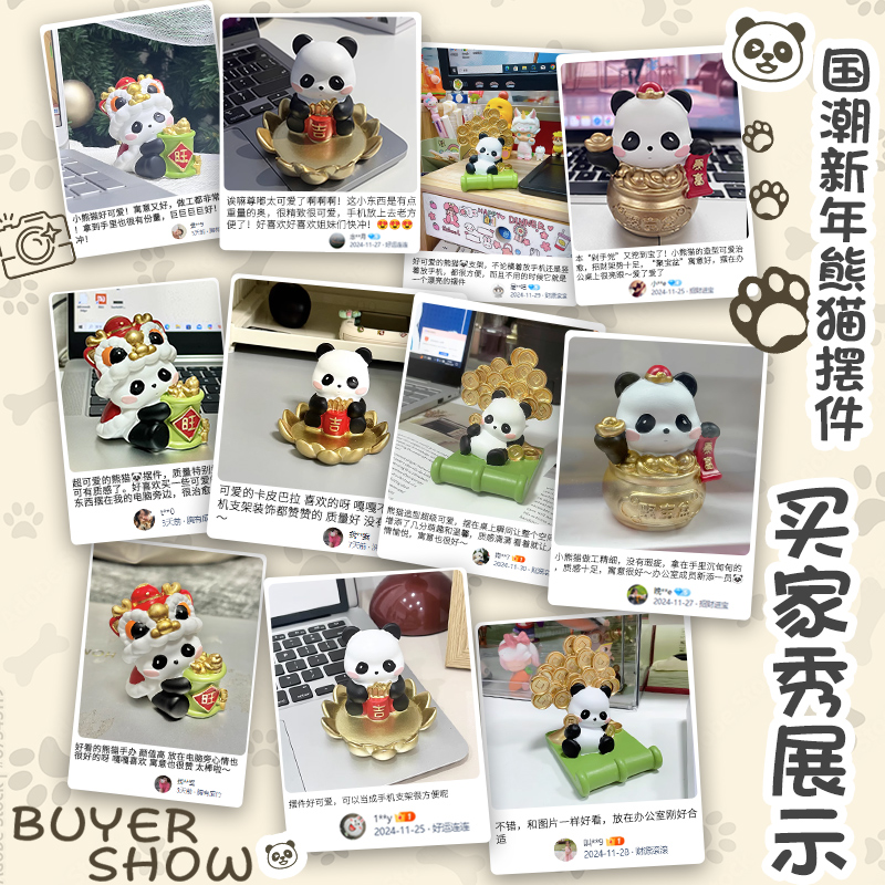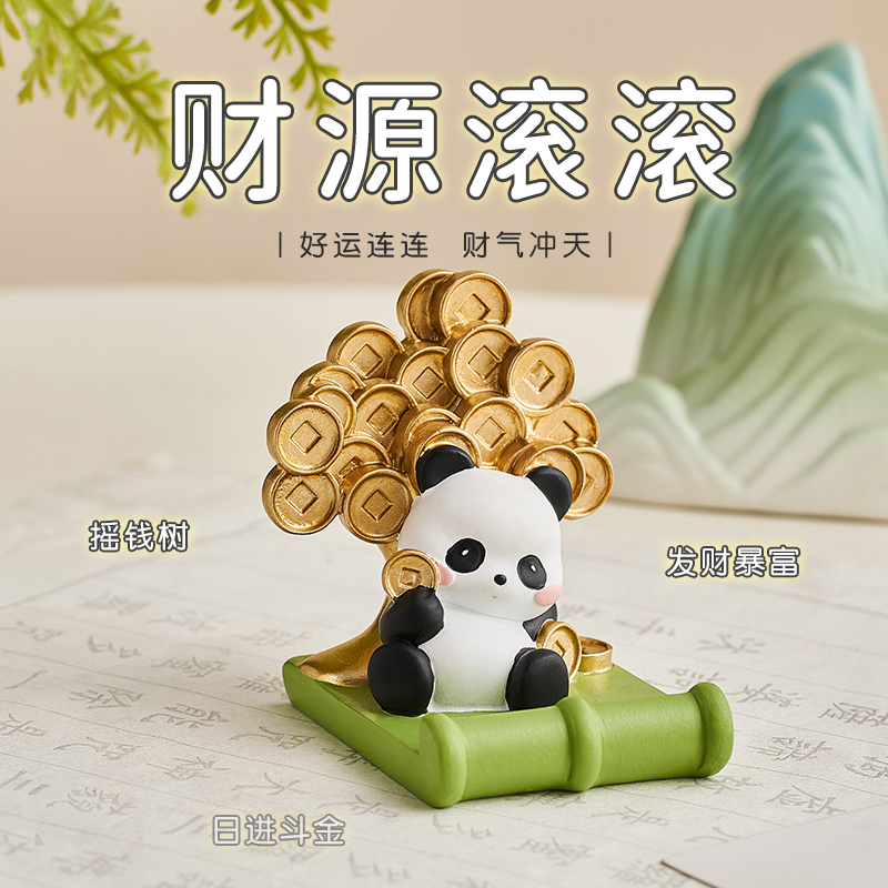 国潮熊猫周边文创办公桌面装饰摆件工位2025新年礼物手机支架可爱