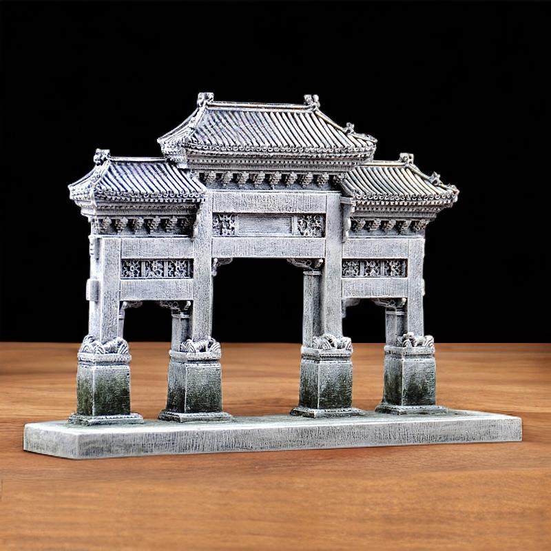 中式牌楼中国古建筑微缩模型鱼缸造景家居装饰桌面摆件可定制刻字