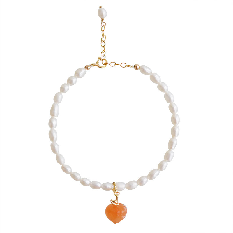 天然南红玛瑙玉石小仙桃子水蜜桃吊坠手链 淡水珍珠手串古风可爱
