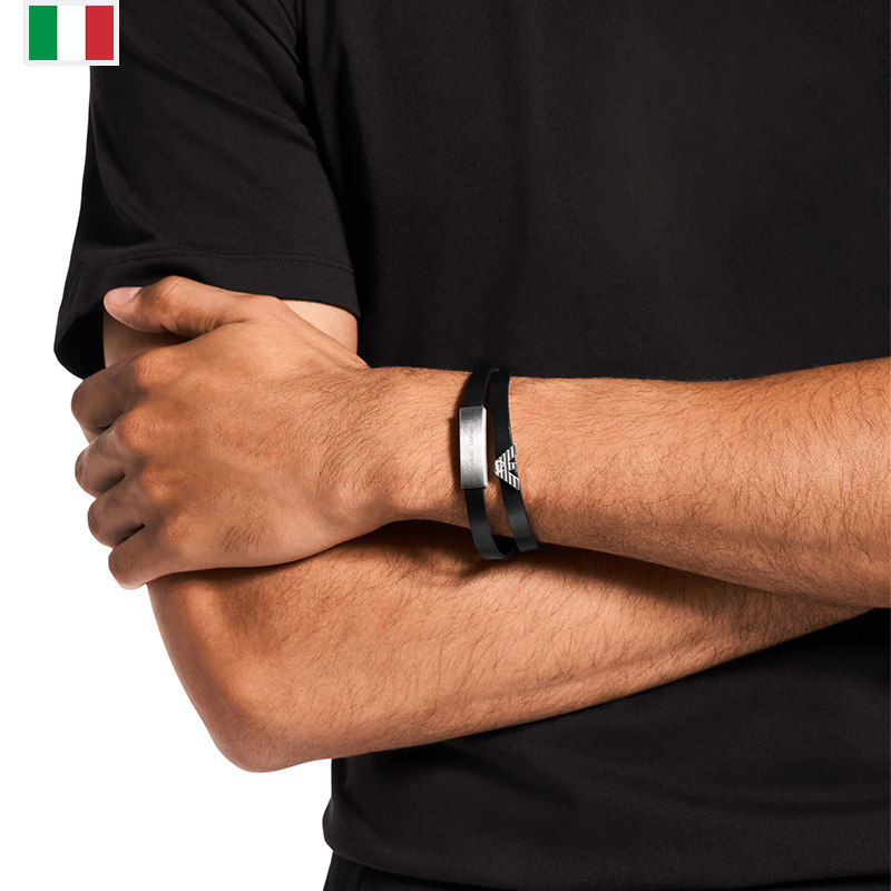 【自营】春季新品Armani阿玛尼男士手链黑色双层皮革钢质男生礼物